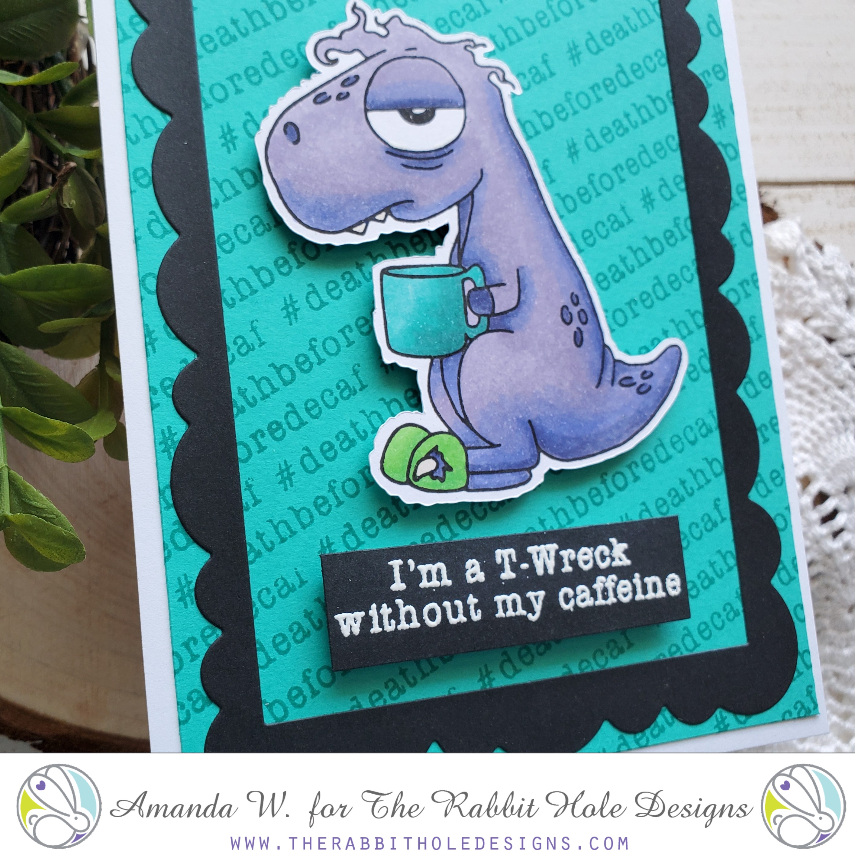 Welcome back everyone! I hope you’re having a great day! Today I’m sharing a simple Caffeinated Dino card from The Rabbit Hole Designs with a different take on the repeated stamping background technique.