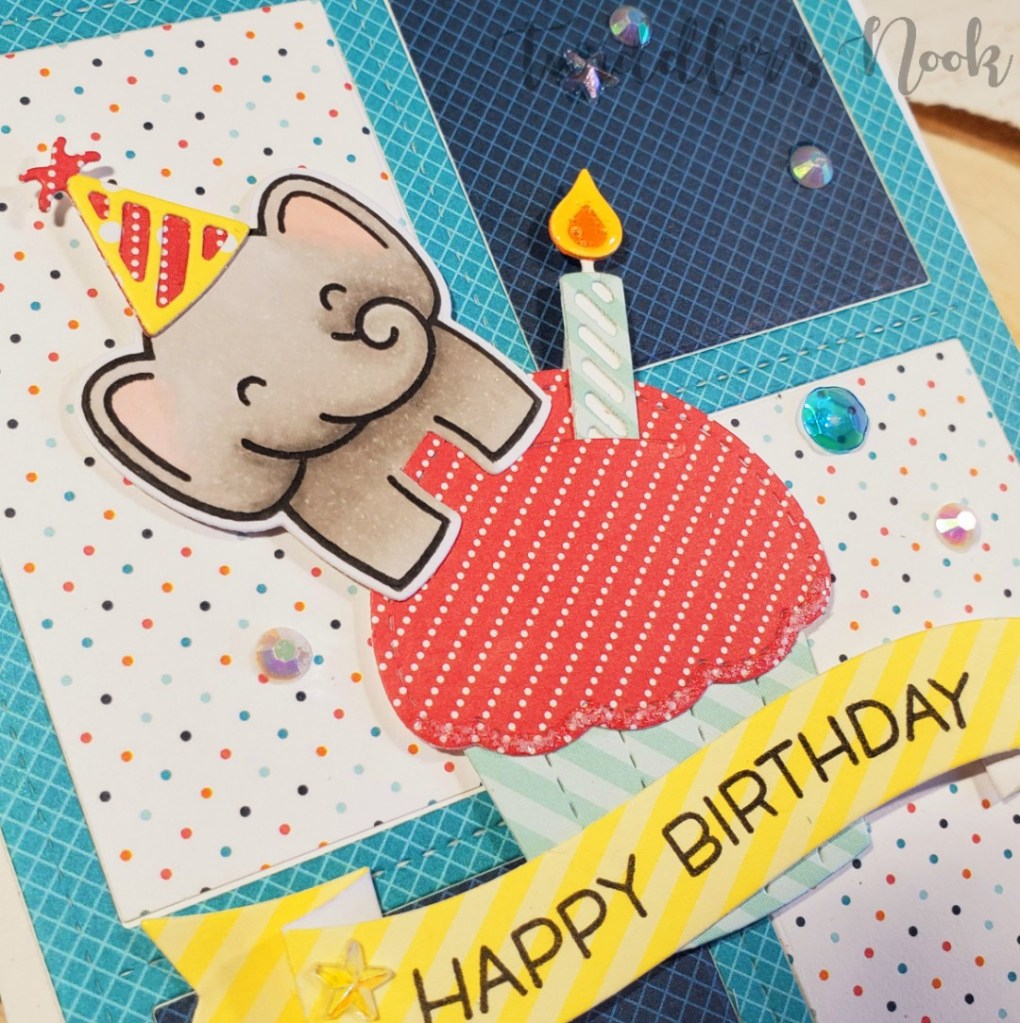 Here’s a closer look at that cute elephant and the added embellishments. Can’t you picture this layout with the sloth, bear and deer hanging on the cupcake edge too! It would be so great.