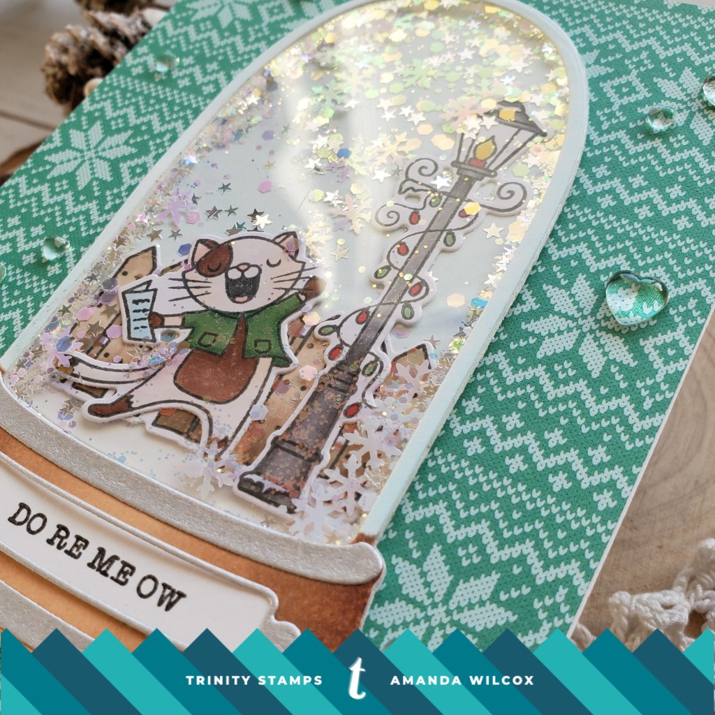 Today I’m sharing this fun snow globe shaker card featuring Trinity Stamps products. I can’t get enough of these kitties and the snow globe dies were just asking to be made into a shaker card.