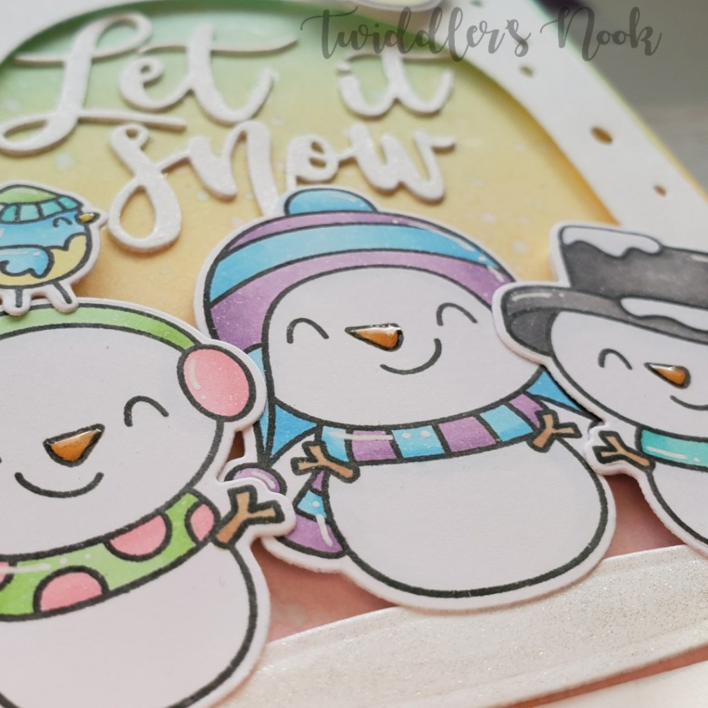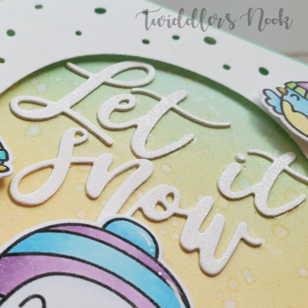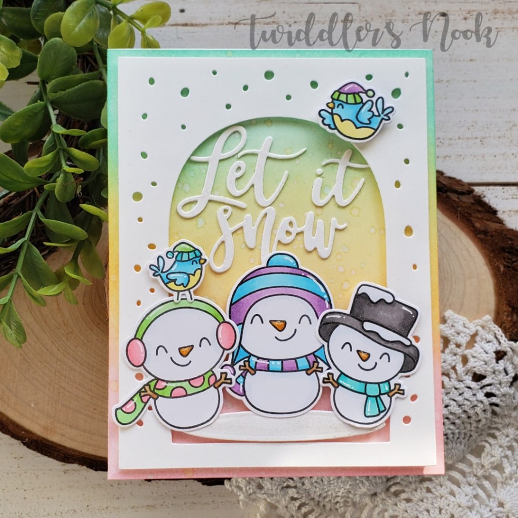 Thanks for stopping by! I’m having so much fun using bright, non-traditional colors these days, I thought I’d make one more. Today I’m using some new stamps and dies I recently received – Avery Elle Snow Fun stamps and dies and the Let It Snow dies.