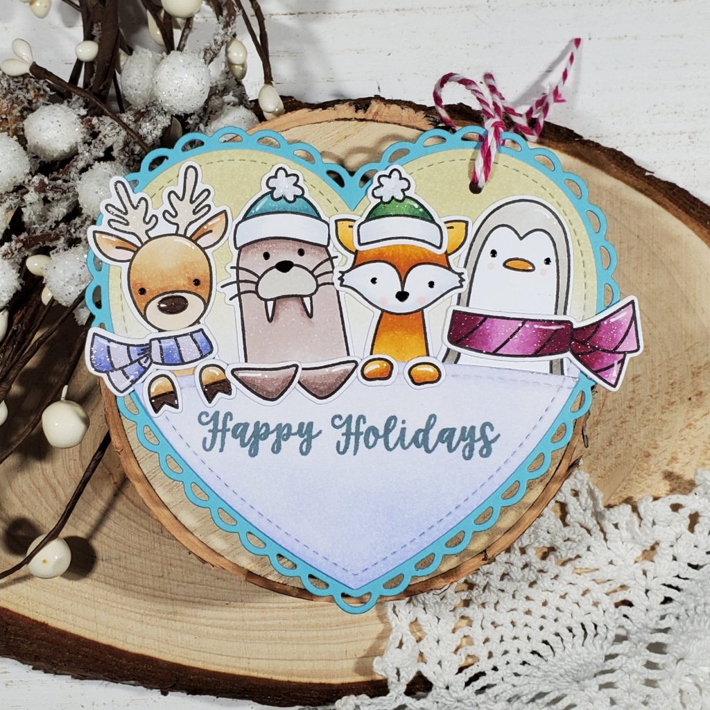 Today I’m sharing another Christmas tag. I loved the star-shaped tag I did before so I decided to try a heart. I love how it turned out!
