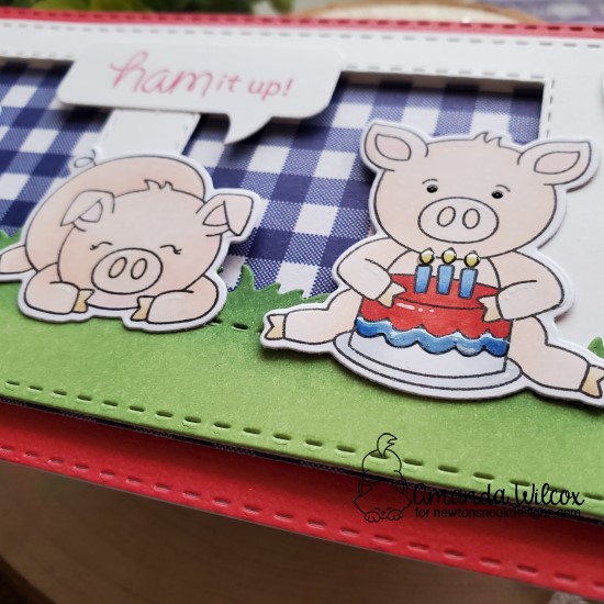 Hi there! I’ve been making so many thinking of you cards that I decided to go a different route for today’s card. I’m using Oink from Newton’s Nook with some Trinity Stamps dies. The punny sentiments in this set are just the best for many occasions but the birthday one made me giggle.