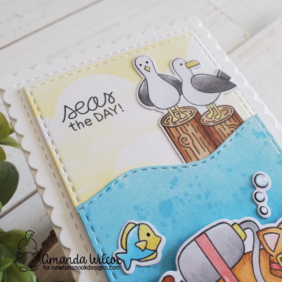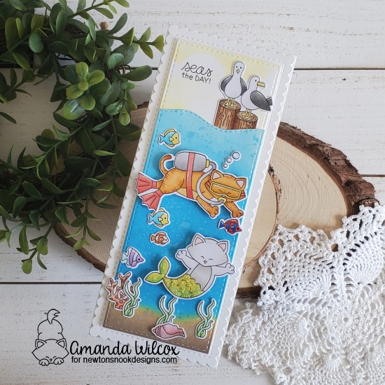 Oh my goodness, I’m so excited about today’s card! I’m up on the Newton’s Nook blog today with this fabulous underwater scene slimline card featuring a bunch of awesome Newton characters!