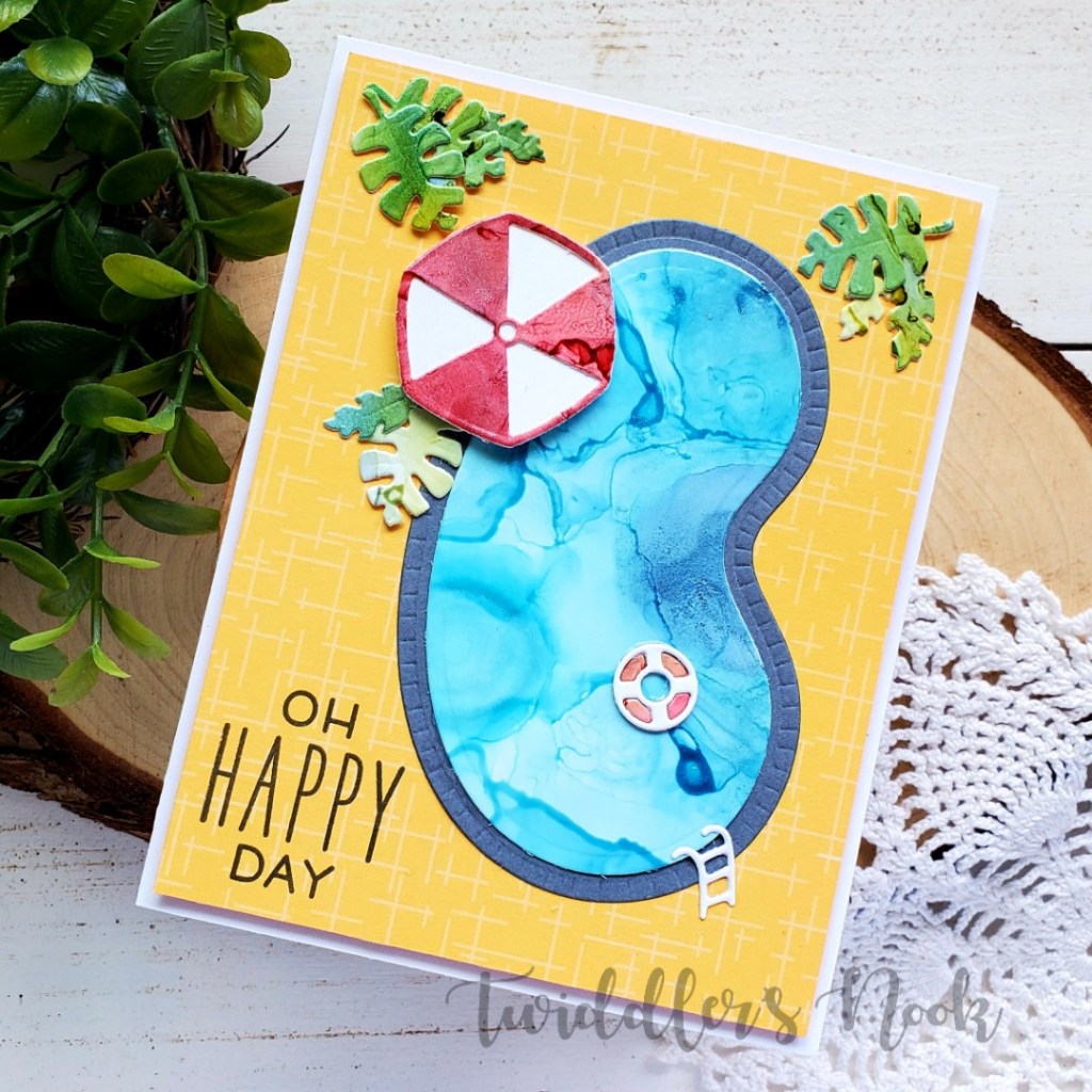 I created a few backgrounds with the various colors that I have and then used my new Spellbinders Pool with a View die set to die cut the various pieces. I found this fun yellow Avery Elle patterned paper in my stash and used it for a background for my scene.
