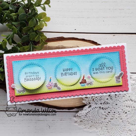 Love your peekaboo slimline card! Opening the portholes to see those cute goats would be a fun surprise for whoever receives this card!
