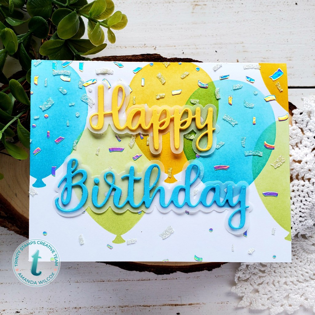 I inked up those awesome balloons with a new stencil coming and then did some foiling and glitter glitz gel with another confetti stencil coming too! How about those awesome die cut words with the shadow behind them. I love it when word dies come with both! It’s so useful!