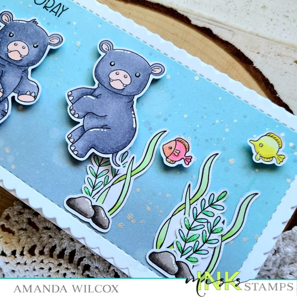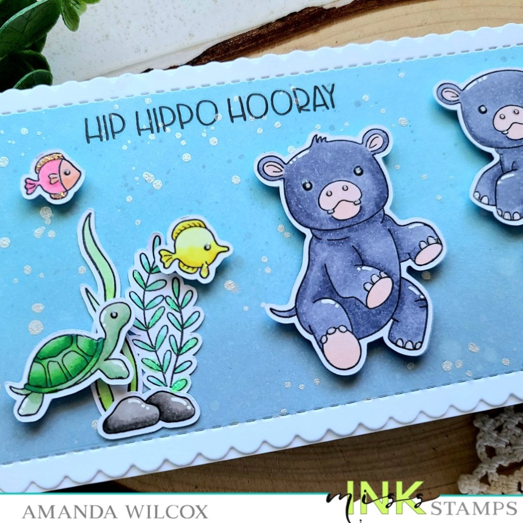 Oh my word, y’all!!! I am over the moon in love with these new cute hippos from Miss Ink Stamps. They are just the cutest and so are all the little extra critters that come with them to set your scenes. I had way too much fun playing with these guys!