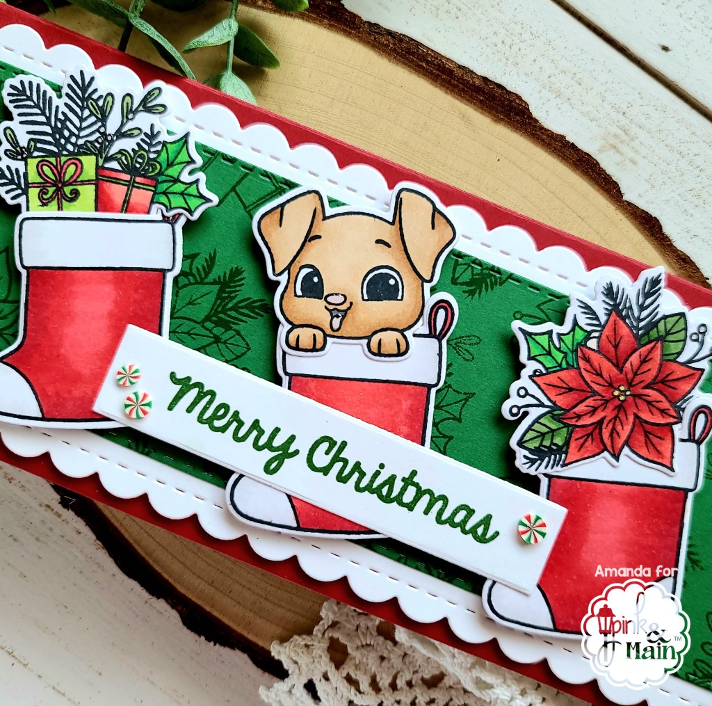 What are you hoping to find in your stocking this Christmas??? Maybe one of these fun filled stockings would suit you. 😉 I’m over on the Pink & Main blog with this adorable slimline stocking card featuring new goodies from the October release.