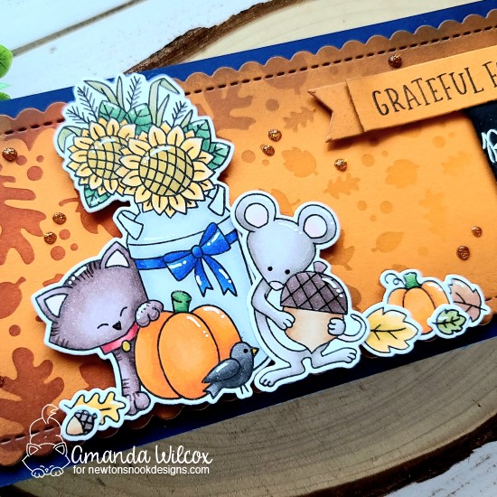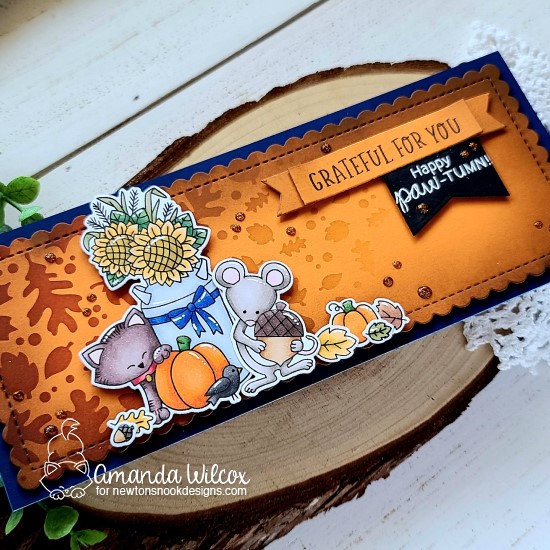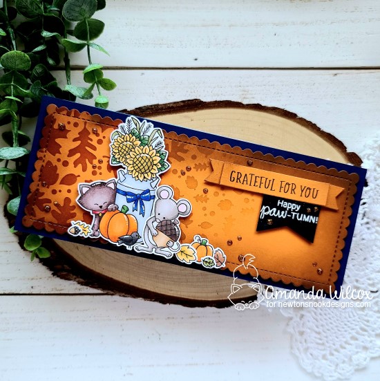 Hello everyone! I’m over on the Newton’s Nook blog today featuring a sweet fall themed slimline card. I had extra fun mixing and matching different products to create a mini scene and got inky with some stenciling too!