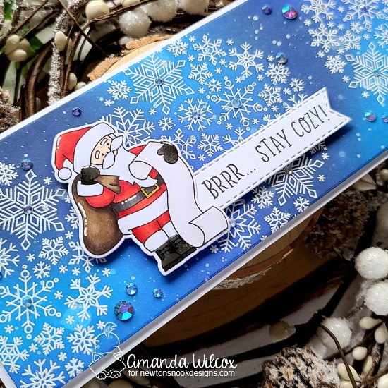 Amanda I love this background and the santa with his list – I hope my name is there! TFS your beautiful art – stunning slim line card creation!