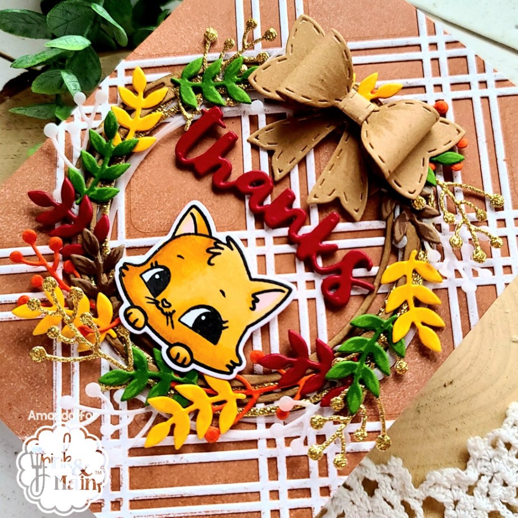 Happy Weekend everyone! I’m over on the Pink & Main blog today featuring this super adorable fall wreath card. The wreath is an older die set and the kitty is actually from the recently released Stocking Stuffers set that’s Christmas themed! And there’s that fabulous embossing folder that will be making an appearance in the shop very soon too!