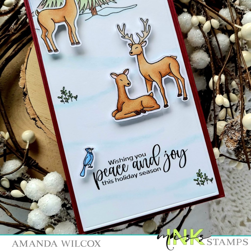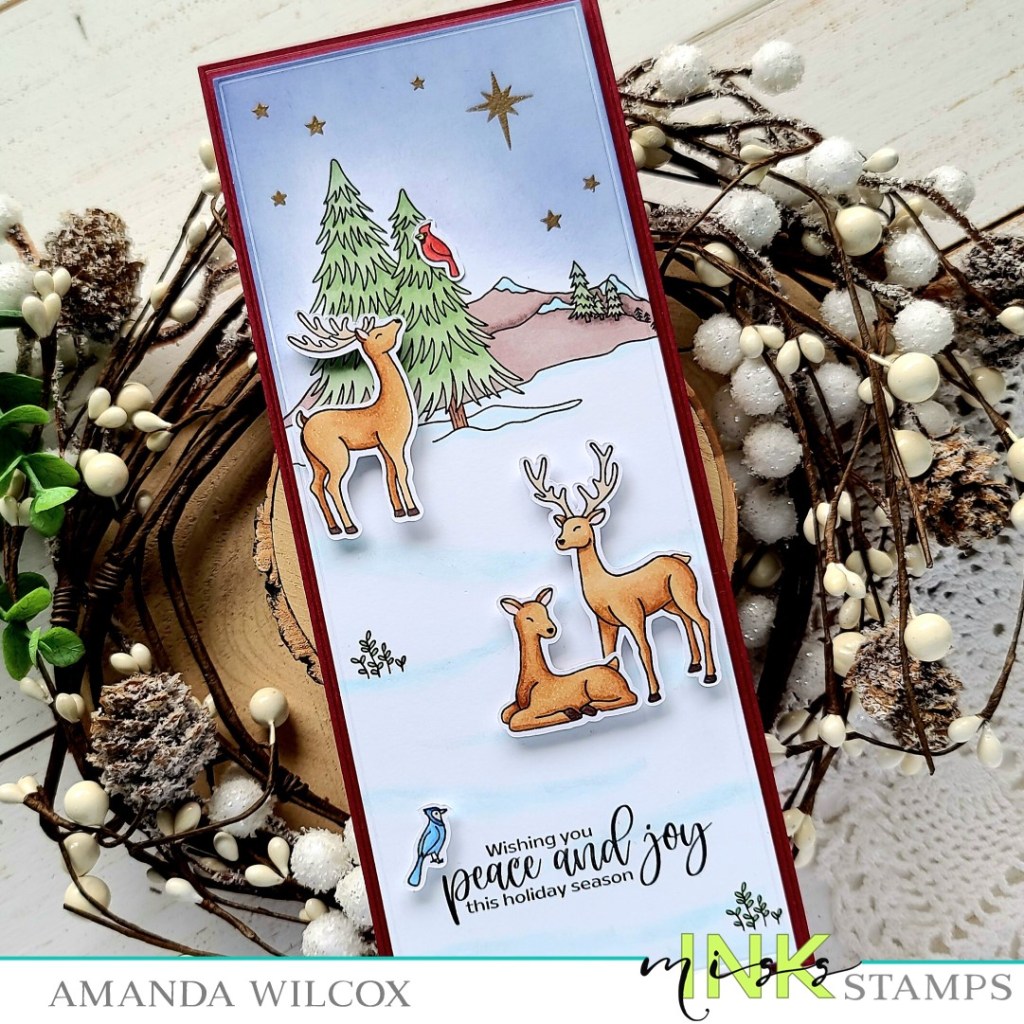 Welcome back everyone! I’m stopping in to share a beautiful slimline scene card featuring some new and older Miss Ink Stamps products. This card was so relaxing to create and I just love how it turned out.