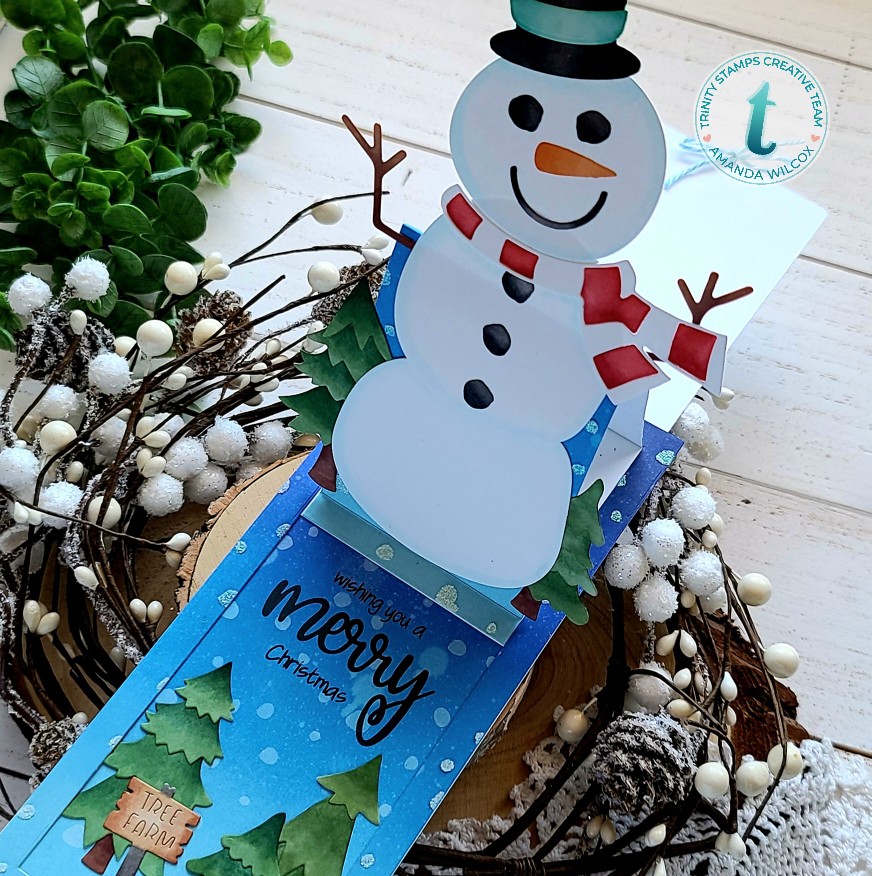Hey friends!!! I’m soooo excited to share today’s card with you! It was so much fun to create and I absolutely cannot wait to give it to the recipient! It’s a slimline pop up slider that will hold a gift card. Everything I used today is from Trinity Stamps – an excellent source of slimline products! Let’s have a look!