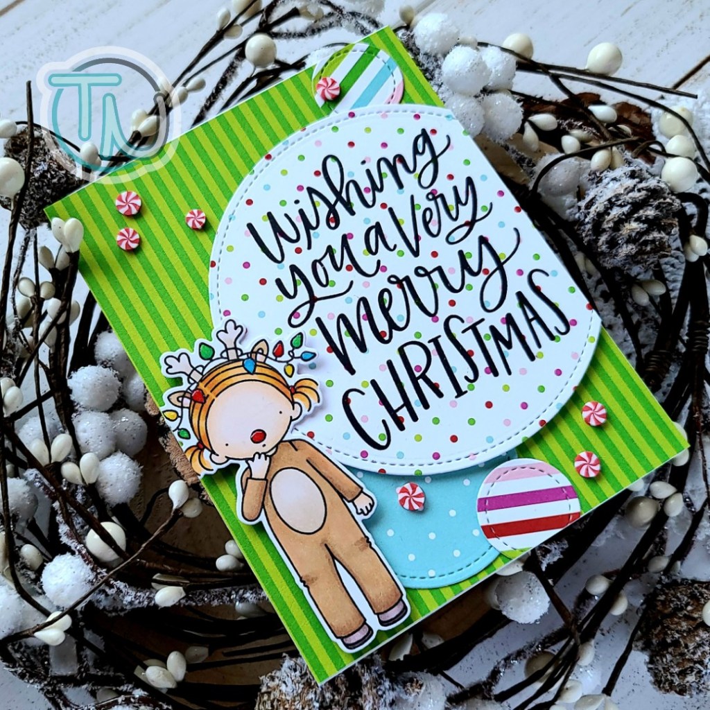 When I ordered this great Reindeer Games set, I also picked up the Wishing You a Very Merry Christmas sentiment and Very Merry paper pad too. I couldn’t resist. So naturally I put it all together for my first card.