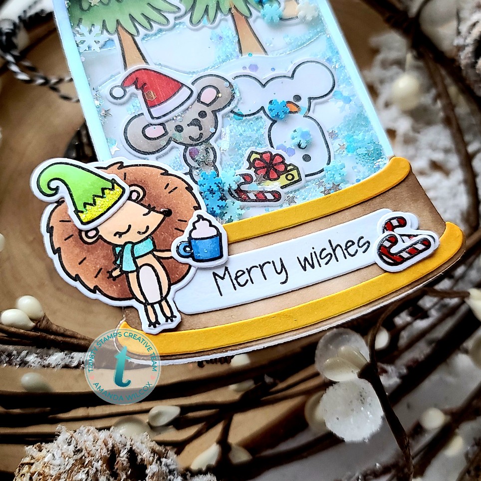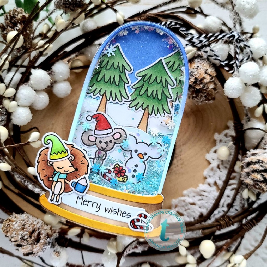 Oh my goodness, did I have fun creating this great little scene for my snowglobe shaker tag to share with you today! I pulled out Mouse House to pair with the new Winter Burrow set along with the tall shaker dome die set for my snowglobe.
