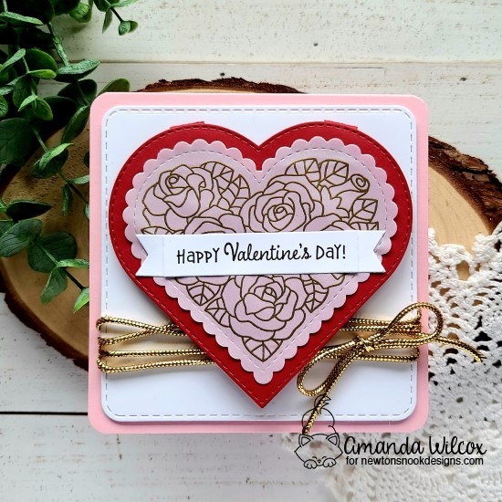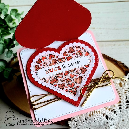 Now that this is out of the bag, I’m super excited to share my card with you today. I used both of these fabulous stamps along with the new heart frame dies and banner trio dies to create a fun interactive card.