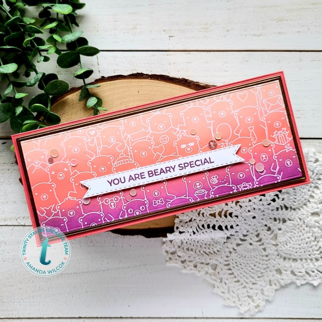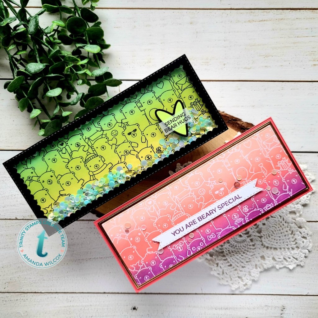Hey friends! I’m over on the Trinity Stamps blog today with a couple of fun slimline cards featuring the newly released Beary Special slimline stamp set. I thought it would be fun to make 2 different cards using a lot of the same techniques and products.