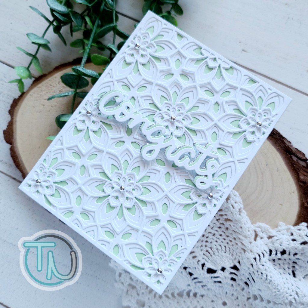 Welcome to another wonderful week everyone! Today I’m popping in really quick to share a card that I made for a coworker who recently got married. I used some of the Birch Press Design layering dies, with a Lawn Fawn sentiment and some Trinity Stamps baubles.