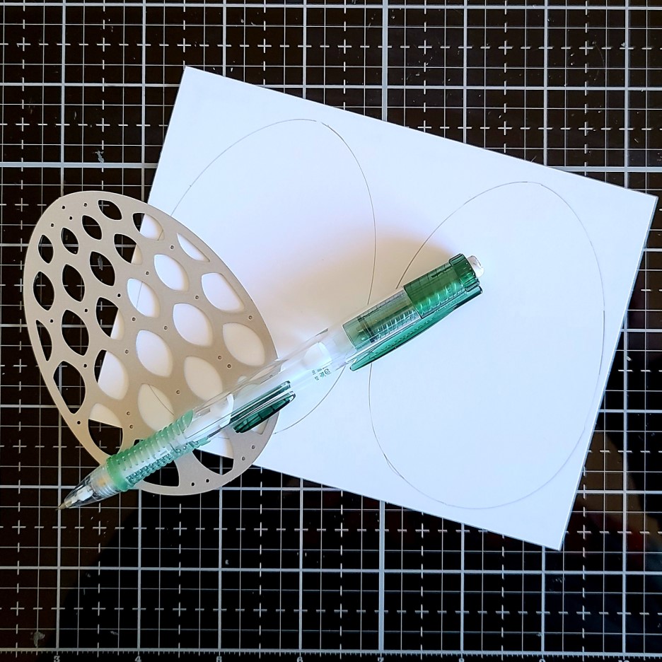 I used liquid glue to adhere all of my egg layers together and decided I wanted the backs to be solid so the background panels didn’t show through. Since there isn’t a solid egg shape I traced one of the dies three times and cut inside the tracing line and glued it to the back of my layers. If anything hung over, I just used my scissors to trim off the excess. Super easy and forgiving if you don’t fussy cut well.