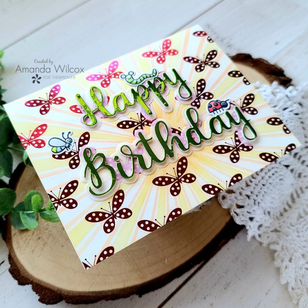 Hello again! Cheers to a new week and a fresh start! Today I’ve got a couple of fun cards to share with you featuring the newest limited edition release of toner sheets from Thermoweb called Time To Fly! They are super adorable butterflies and dragonflies! I couldn’t choose so I made a card with each of them for you!