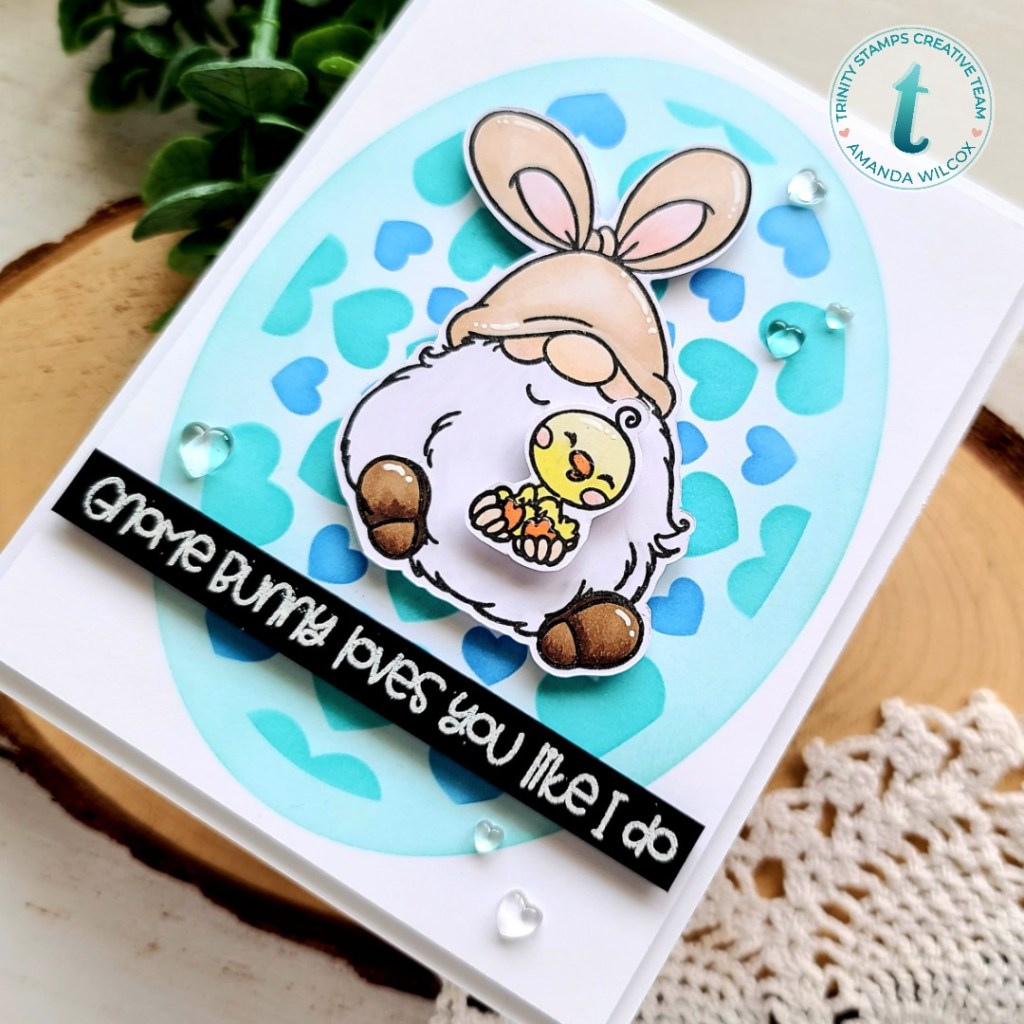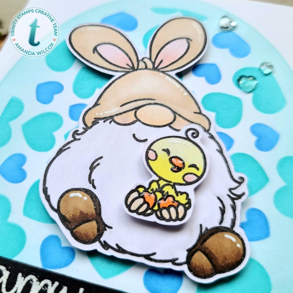 Hi again! I’m over on the Trinity Stamps blog today too and wanted to share the sweet gnome bunny card that I made. I tried to take the Easter sets and give them a different feel for more use throughout the year. So if you have a gnome lover, this just may work for you too!