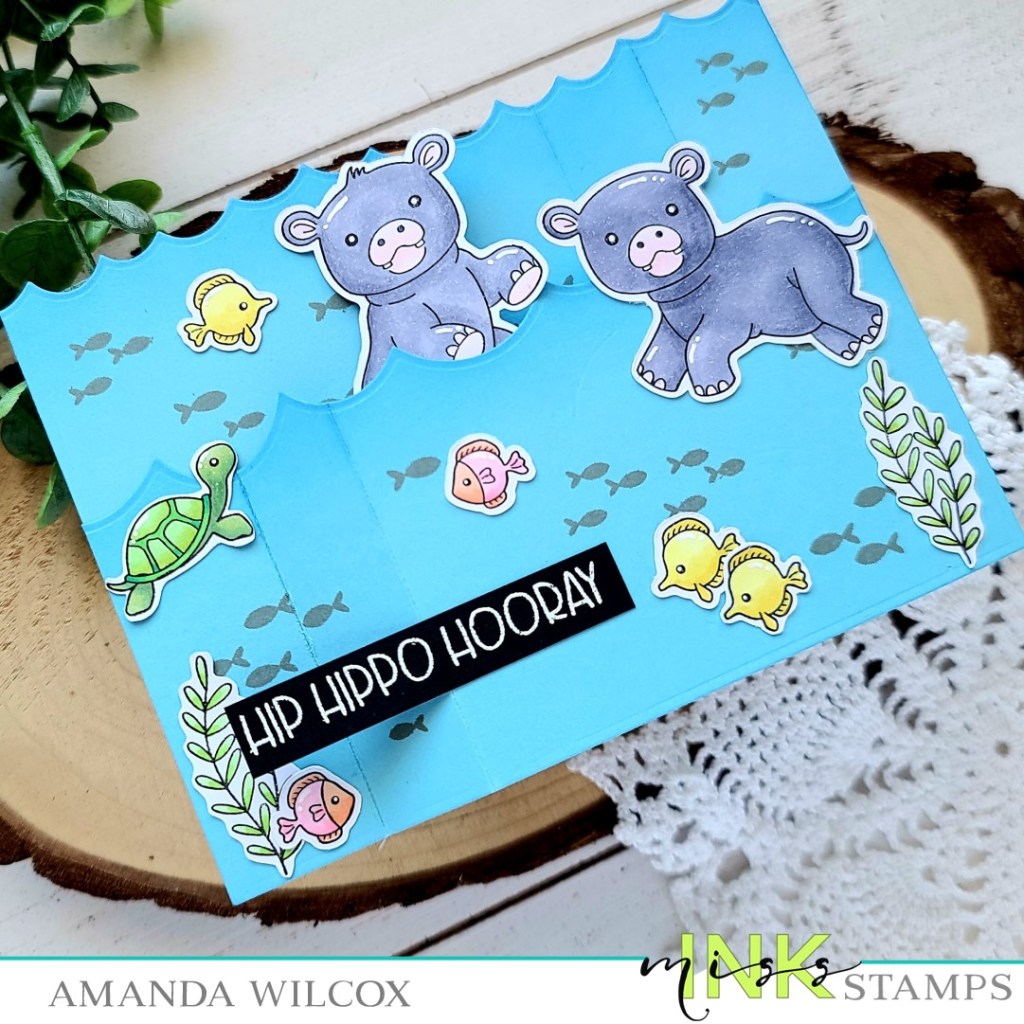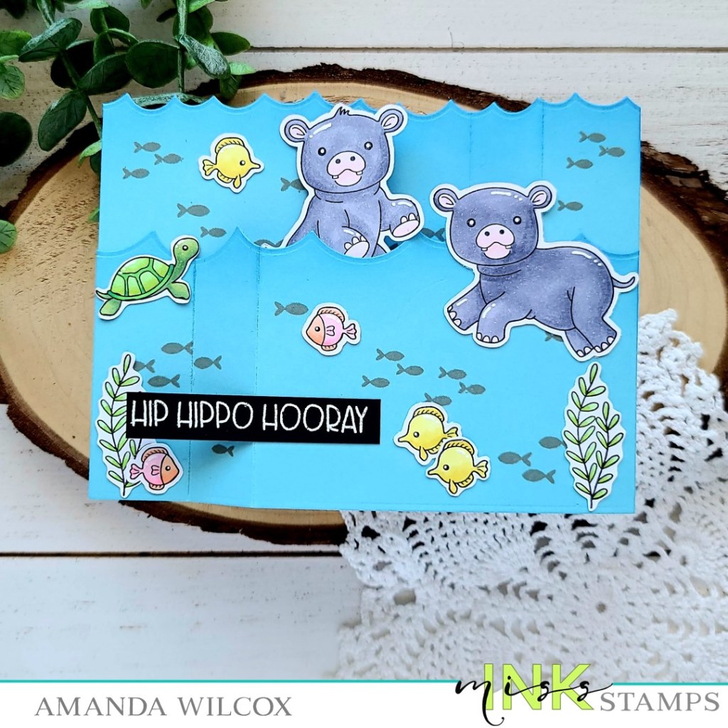 Hello again! Today I’m back with another Miss Ink Stamps card but this one is extra fun and totally adorable too! These hippos are so super cute! Plus today’s card is interactive which makes it even better!