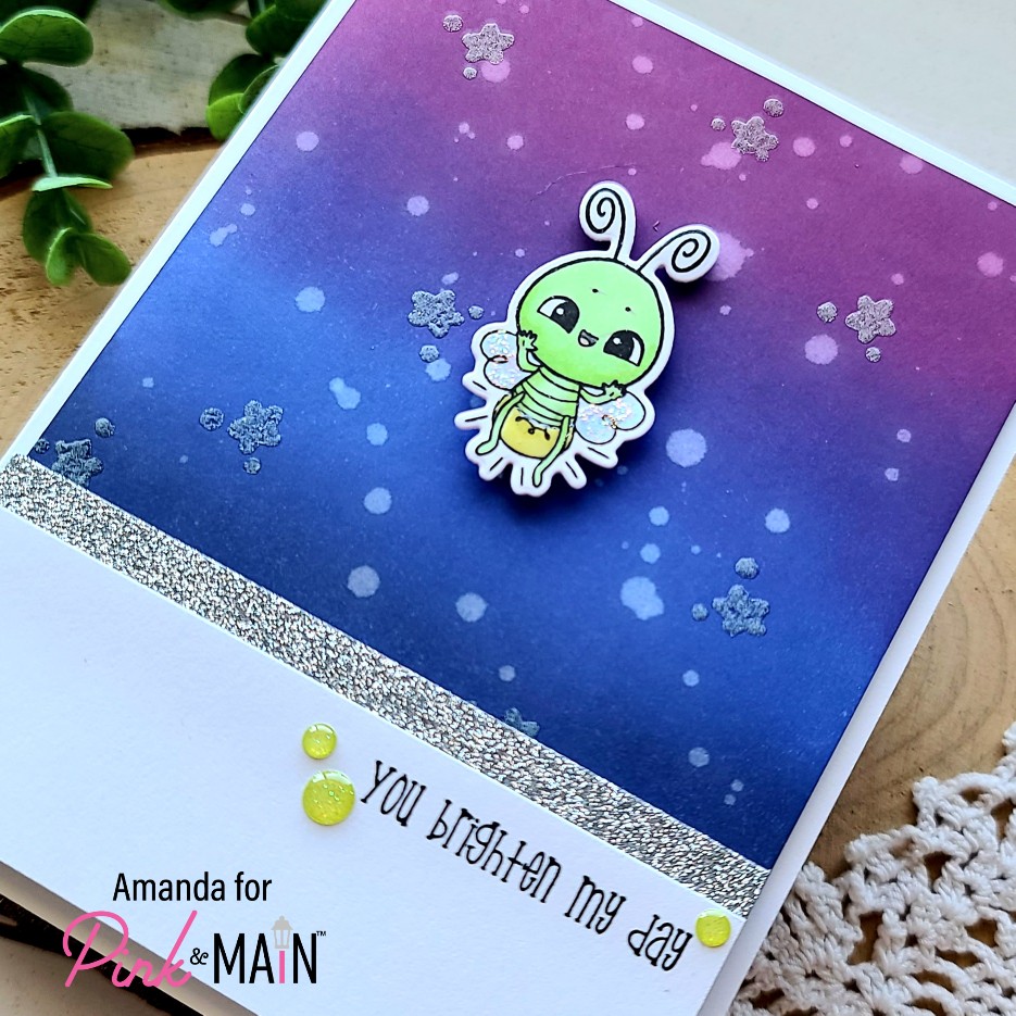 Happy Sunday everyone! I’m popping in really quick today to remind you that there is still time to sign up for the Pink & Main stamp of the month and get the May cuties! This month’s stamp set is called Way to Glow and it’s an adorable set of fireflies. I have a super fun glow in the dark card to share with you too!