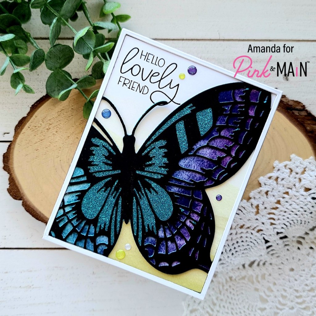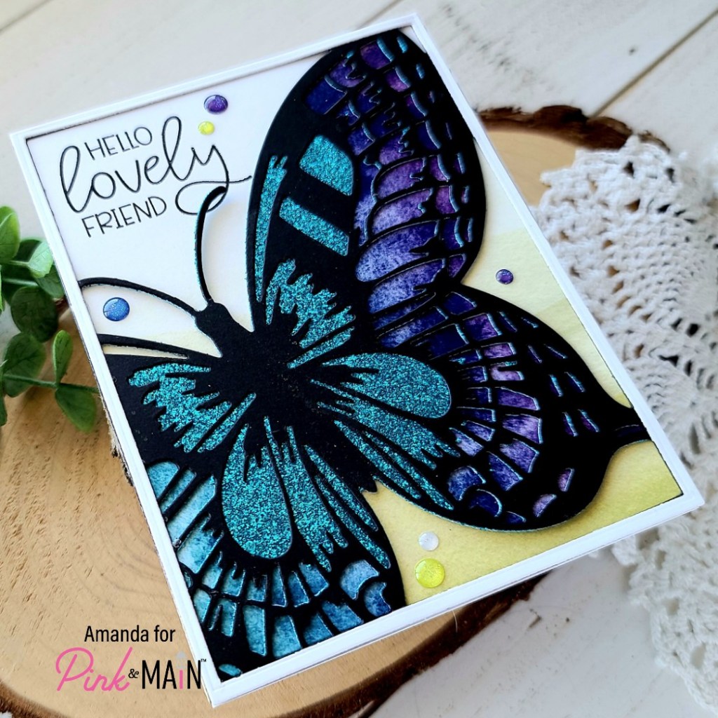 Happy Friday everyone! I had a little die cutting fun with the most recent Pink & Main release and wanted to share it with you. This butterfly release was beautiful with so many options for styles of crafting! Today I’m using the Bold Butterfly Cover Panels and some fun paper!
