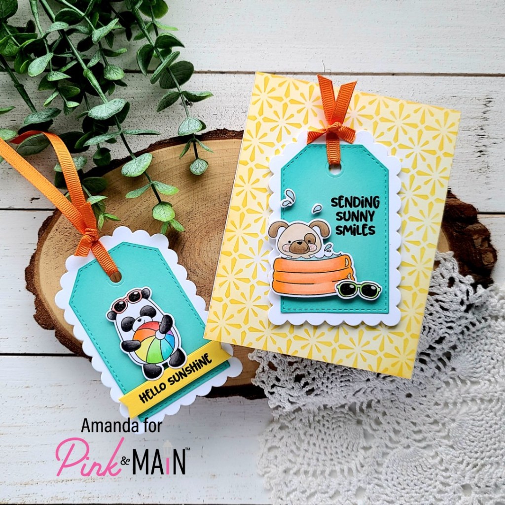 For those that don’t know me well, I’m a panda fanatic…put it with my name and you’ll figure out why it’s been a thing since I was little. ❤ Needless to say, I had to color up this sweet bear from Sunny Smiles just like an adorable panda ready for some fun in the sun! But that pup in the pool is just the sweetest so I snagged him too and thought, why not make a card and tag! It’s so fun!