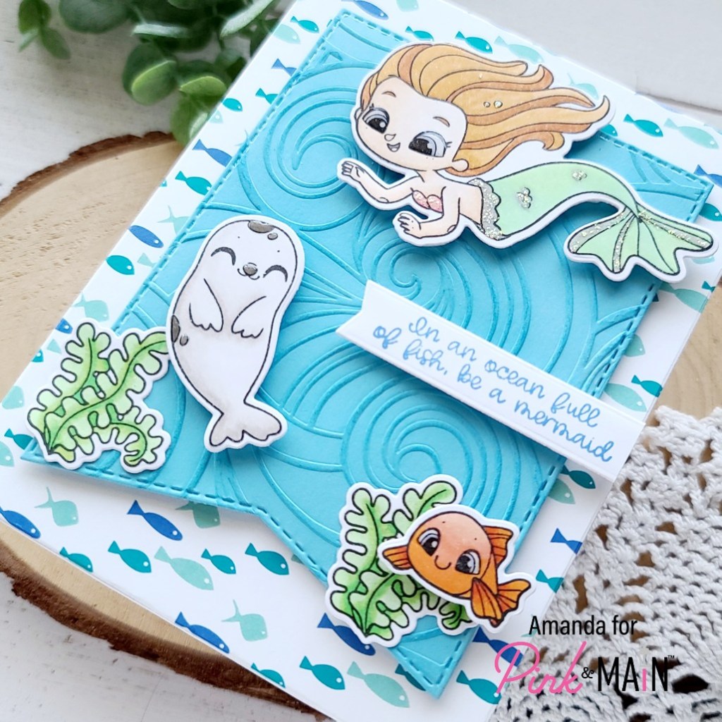 Hello again! Today I’m over on the Pink & Main blog hanging with my mermaid friends! I sure do love them! The cuties in this new stamp set are so much fun and I love the different images where the mermaid is peeking out of the water or her fin is all that’s left from diving down. You can build some awesome scenes with these!