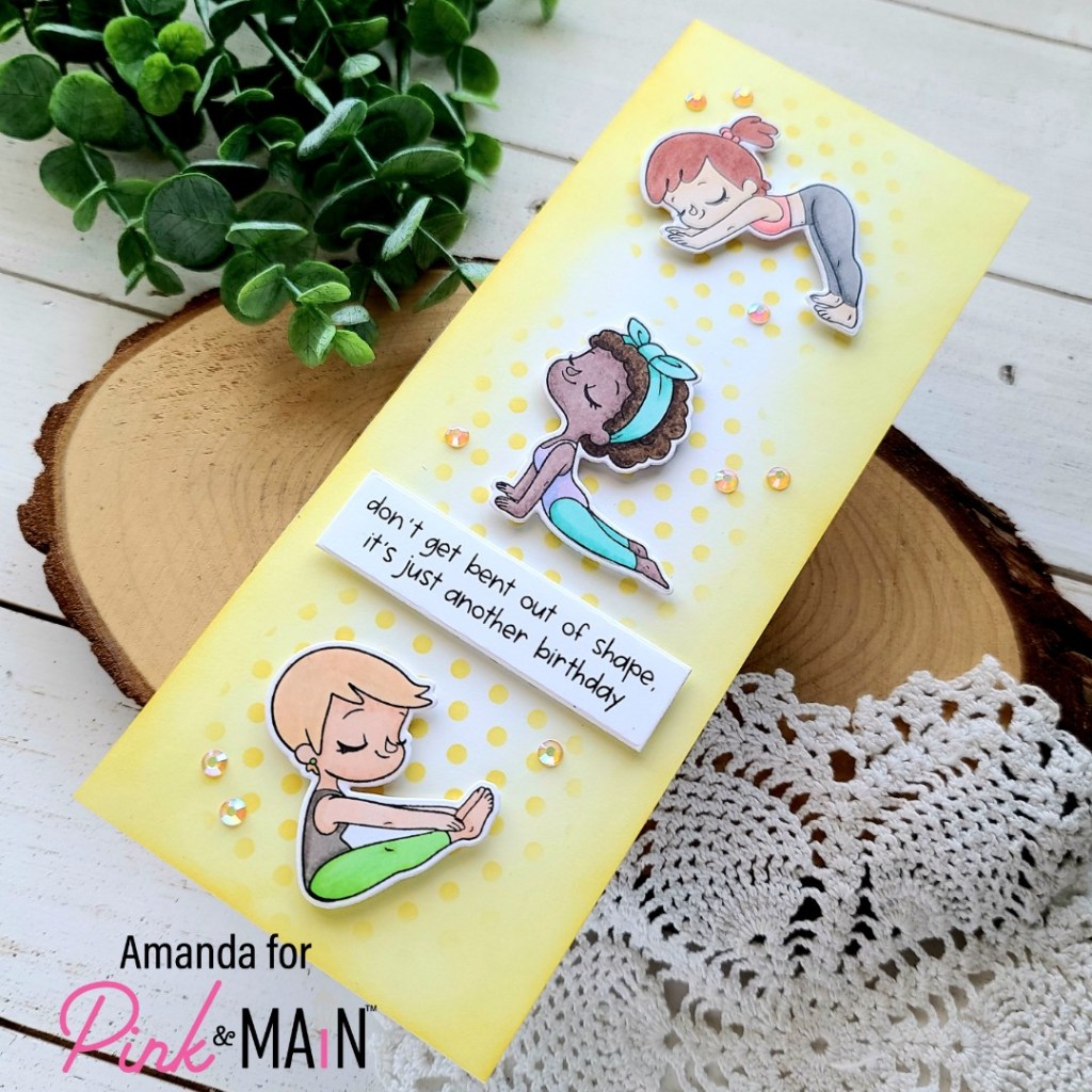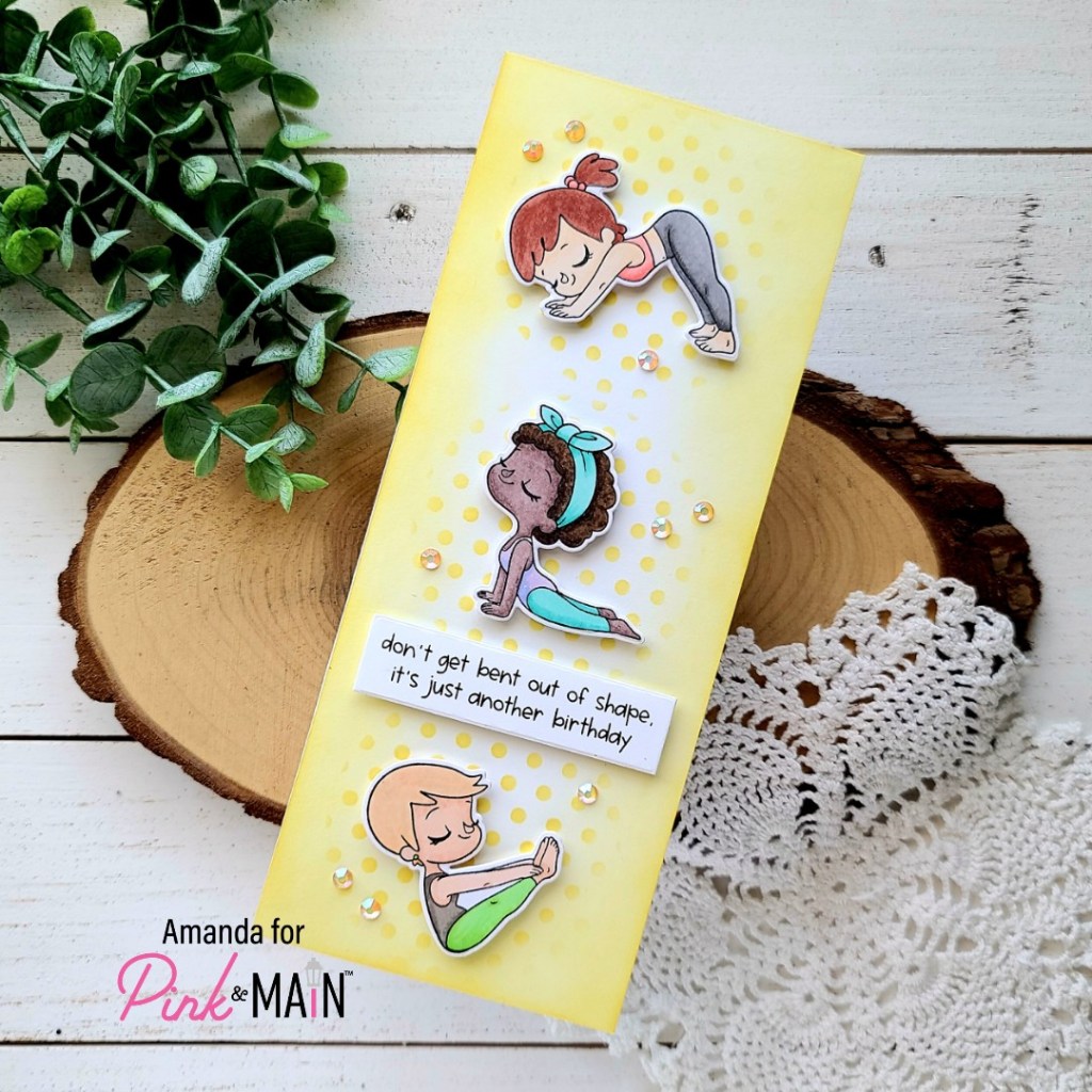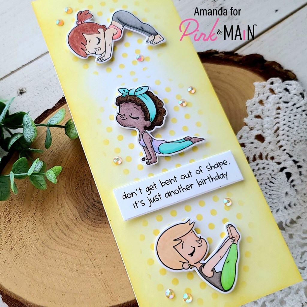 Have you all checked out the most recent Pink & Main release yet? It’s got some different and really fabulous goodies in it! Today’s card is featuring a new set called Namaste. I love these sweet girls and the great sentiments that go with them!