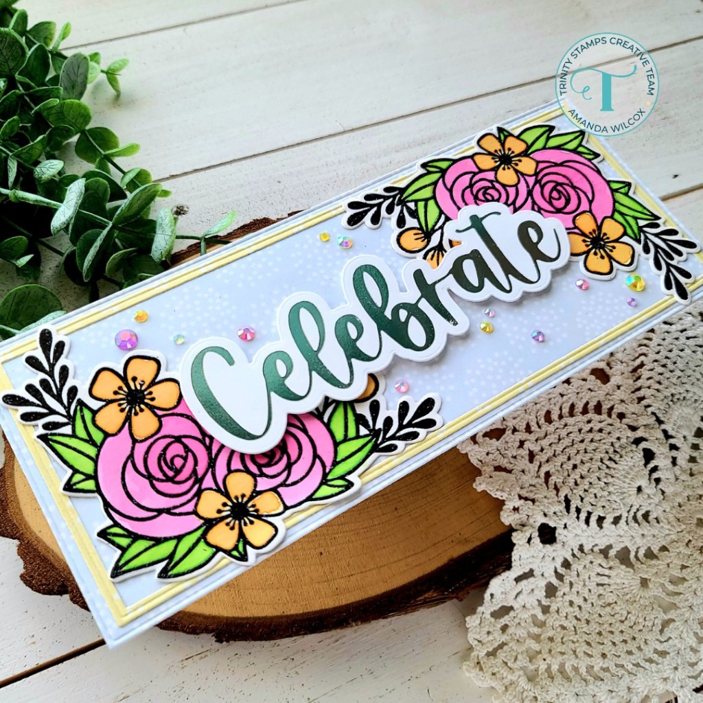 Woo-hoo!!!! Super excited to announce the release of the first ever Trinity Stamps kit! It’s called the Summer Blooms Papercrafting Kit and it includes a stamp and die set, 4 Ink on 3 ink cubes, a special embellishment mix and a coordinating paper pad! We’ve been sharing sneaks all week and today I have another card to share with you plus details on a sale and we’re having a hop over on Instagram too!