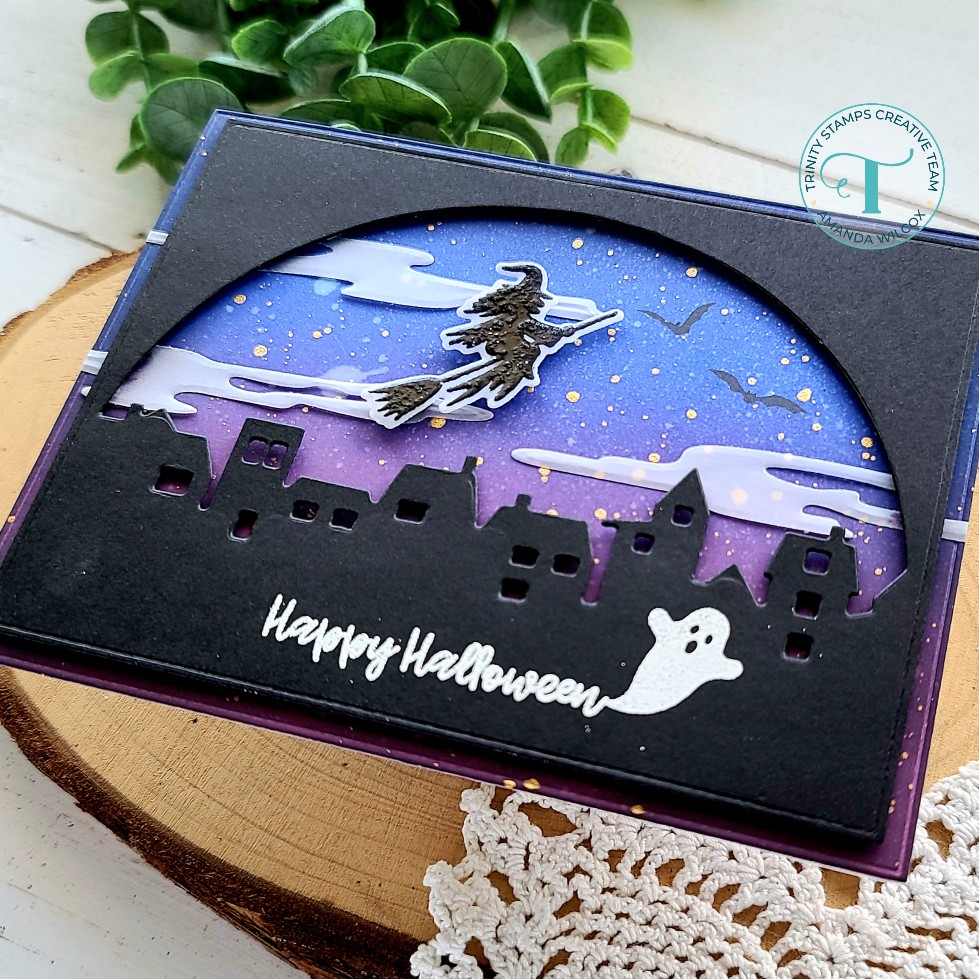 Hey friends! It’s been a minute since I’ve checked in. I hope you’re all doing well. I’m back and sharing a sneak peek today of the upcoming release from Trinity Stamps. Today I have a card featuring a new die called Moonlit Town and a stamp and die combo called Nightscape Scene Builder. These work perfectly together but also great on their own too!