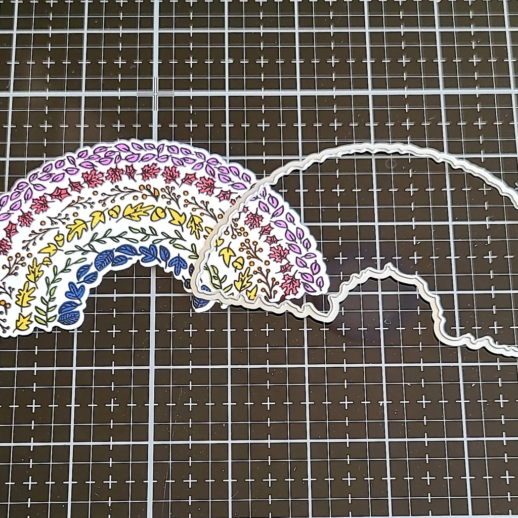 Thanks for stopping in today. I have a short tutorial for you featuring the recently released Harvest Rainbow stamp and die set from Trinity Stamps. The idea of this set is just beautiful and when you put the color to paper it just doesn’t disappoint at all! So many variations are possible too! Practically endless!