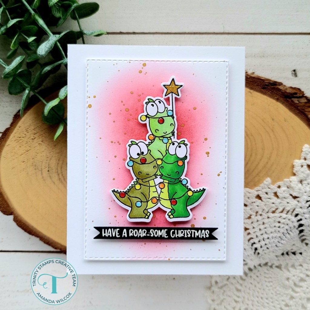 Hello everyone! Today I also have a super fun dinosaur Christmas card featuring the Tree Rex stamps and dies from the new Trinity Stamps release! This set is too cute for words and so fun to color up any way you like!