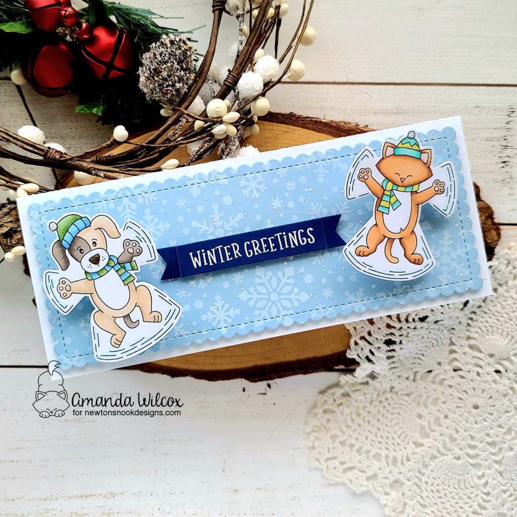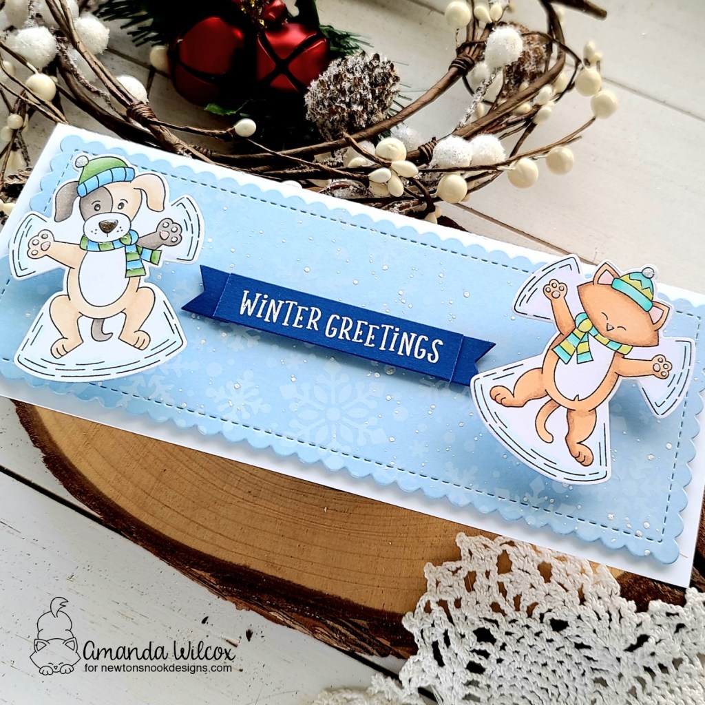 I had so much fun with these sets that I have 2 interactive cards to share with you today. First I have another slimline card featuring both snow angel sets because they are just too perfect together!