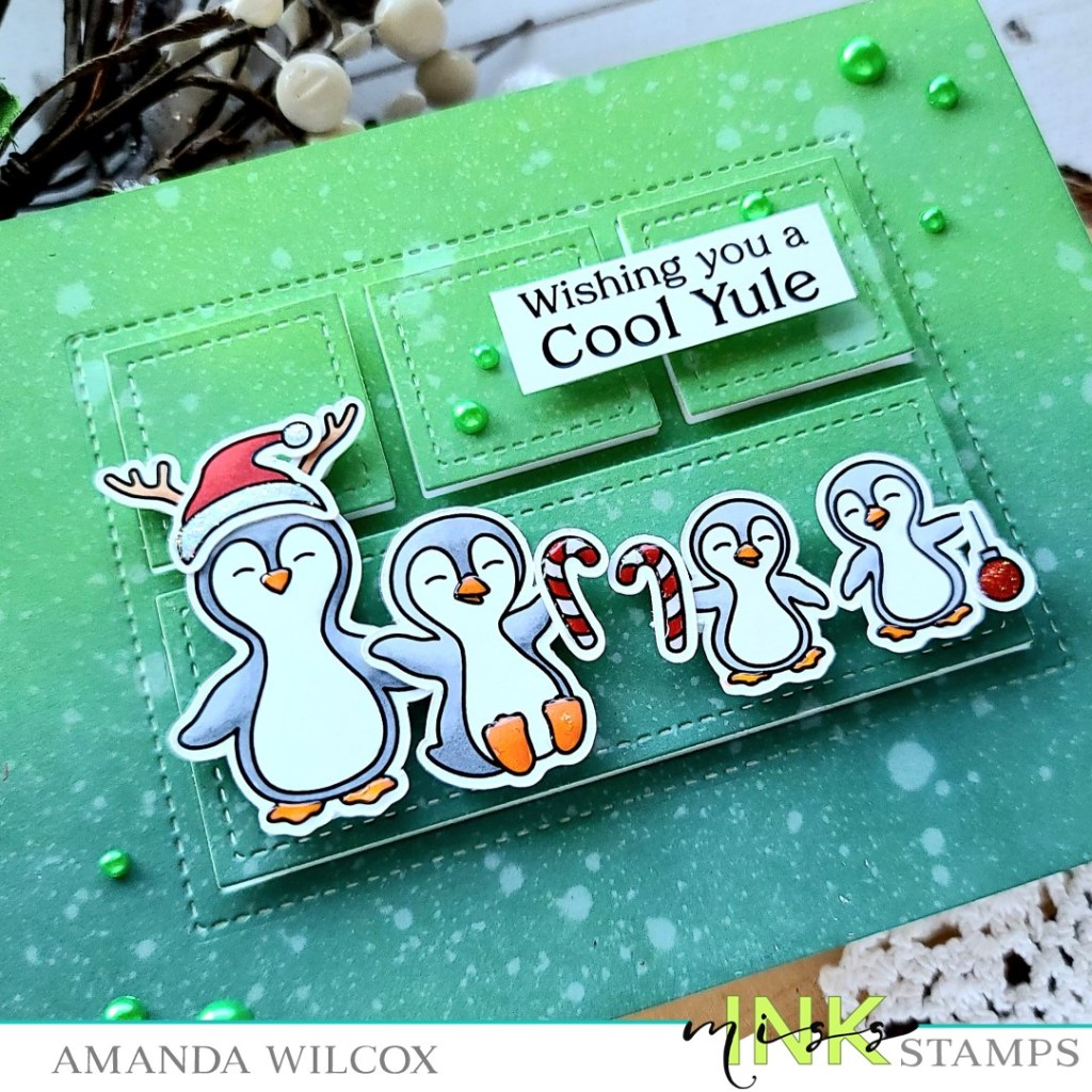 Hello again! I hope your week is going fantastic! I’m having a blast doing all things Christmas – decorating, crafting, baking – all of it! And today I have an adorable Miss Ink Stamps Christmas card featuring the newly release Have an Ice Day penguins! They are too cute and I just love coloring them!
