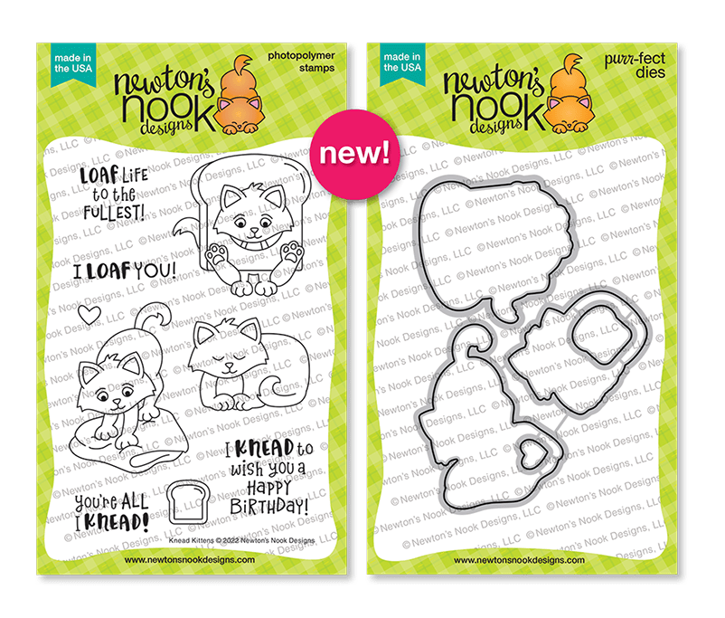 Holy moly! Isn’t that a ton if awesomeness to begin our week with?!? It’s all fantastic! Today I have a card to share with you featuring Knead Kittens stamps and coordinating dies and then a bonus set of cards at the end of this post with the A7 Frames & Banners plus the Love & Meows paper pad too.