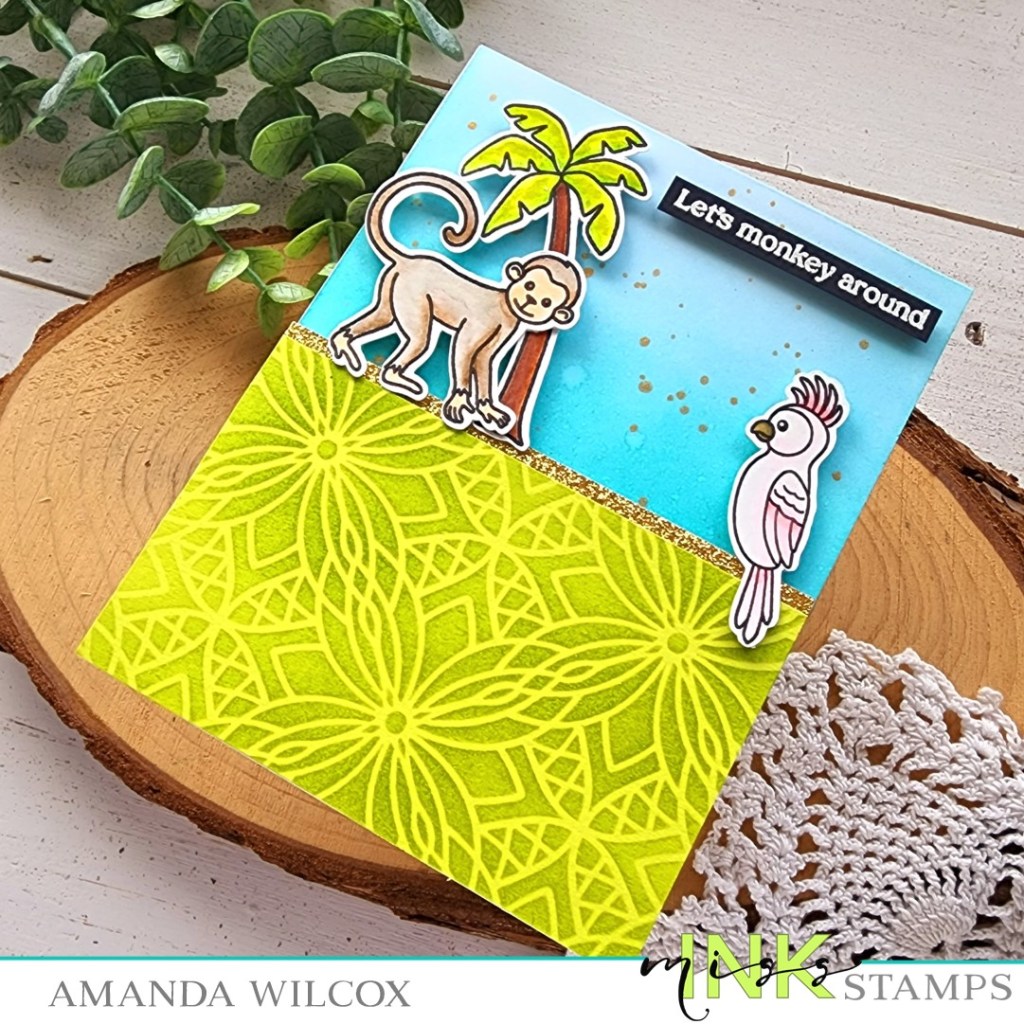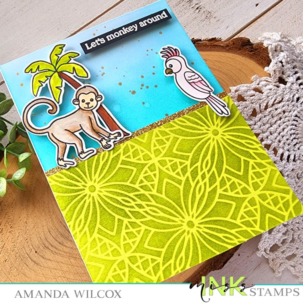 Hello friends! Today I’m back with a bit more inspiration featuring a new stencil from Tuesday’s release called Bluet Burst. It’s so pretty and has lots of potential, especially with the recent jungle release of stamps.