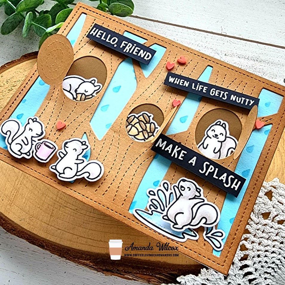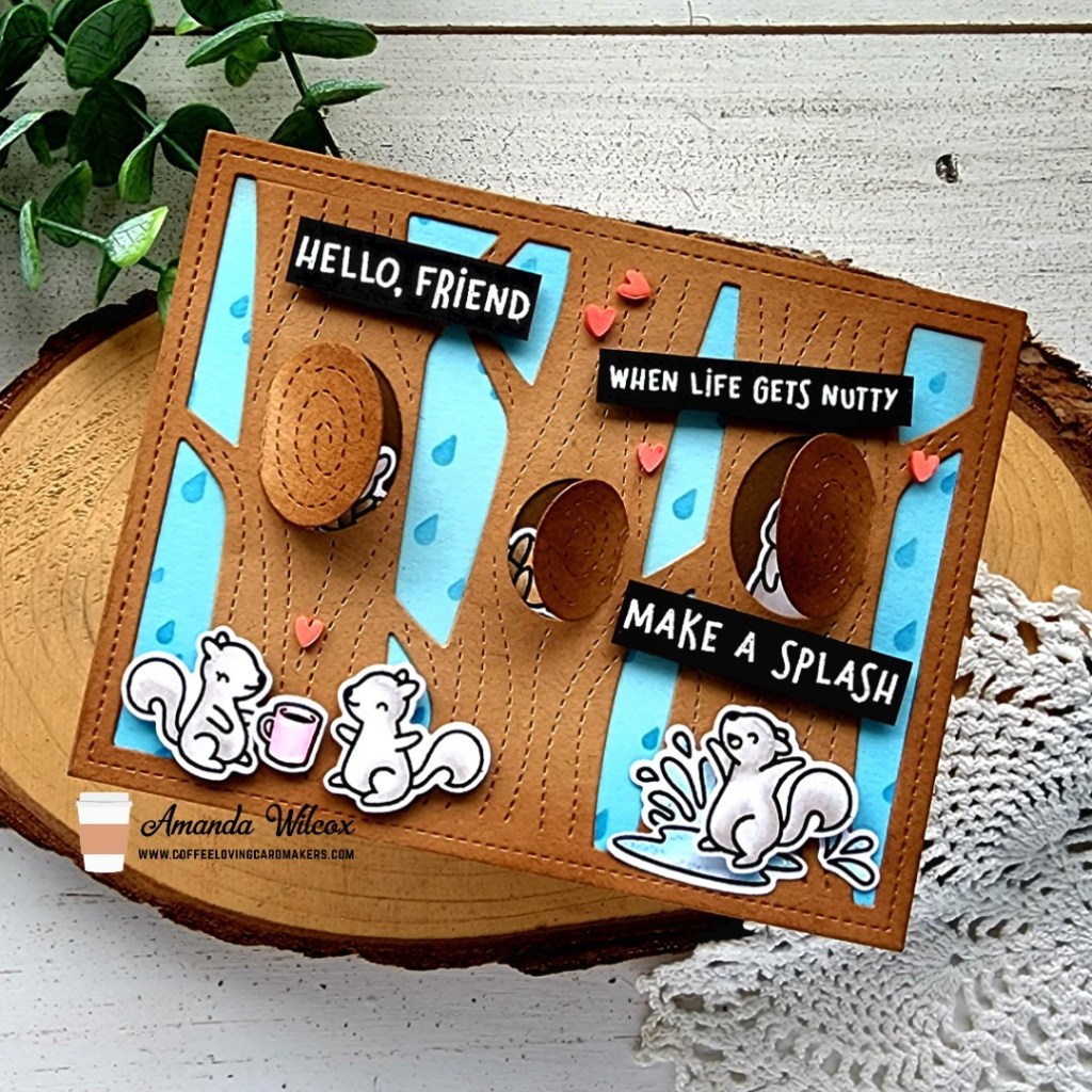 Happy Tuesday everyone! It’s time for Tuesday Tea with Twiddler’s Nook on the Coffee Loving Cardmakers again. Today I’ve got a fun little scene card to share featuring the adorable Lawn Fawn squirrels from a couple of sets and the lift the flap tree backdrop die to help set the scene. I’m also playing along with the new Lawn Fawnatics challenge that just started – build a scene.