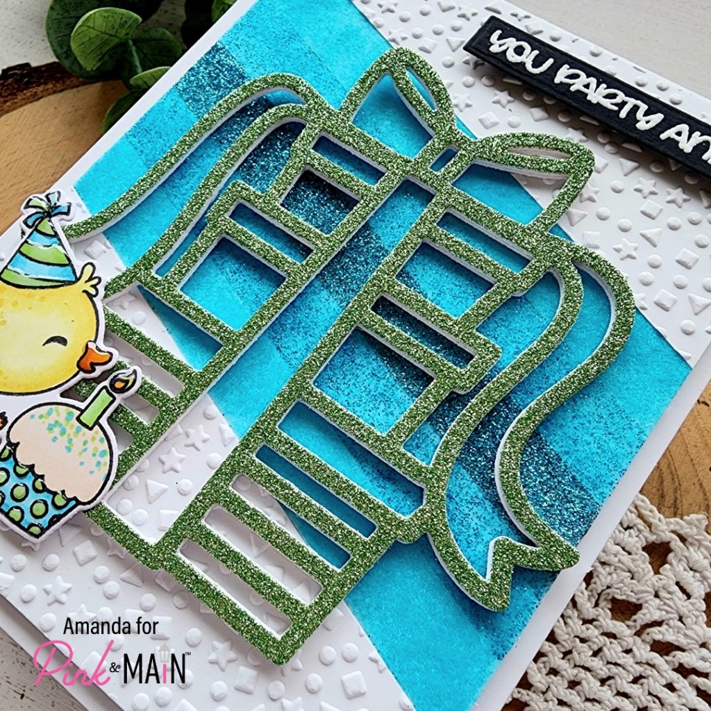 Welcome everyone! Thanks for stopping by. Today I’m over on the Pink & Main blog with a fun birthday card featuring the super fine glitter, flock and sparkling flock too! It’s definitely got bling and texture everywhere!