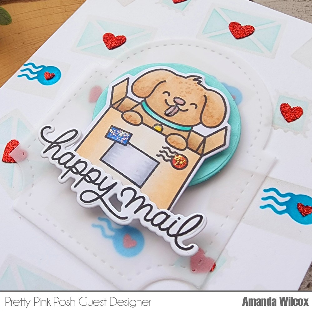Hello again! I’m so glad you’re here. Today I have an absolutely ADORABLE card featuring a new layering stencil from Pretty Pink Posh and some previously released stamps and dies. I just adore this puppy and was so happy to finally ink him up for this card. He is just the cutest!