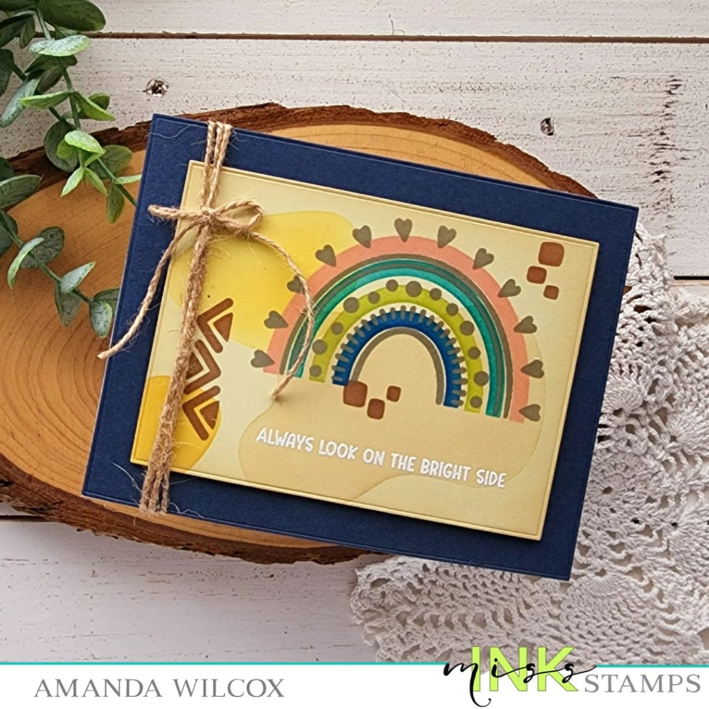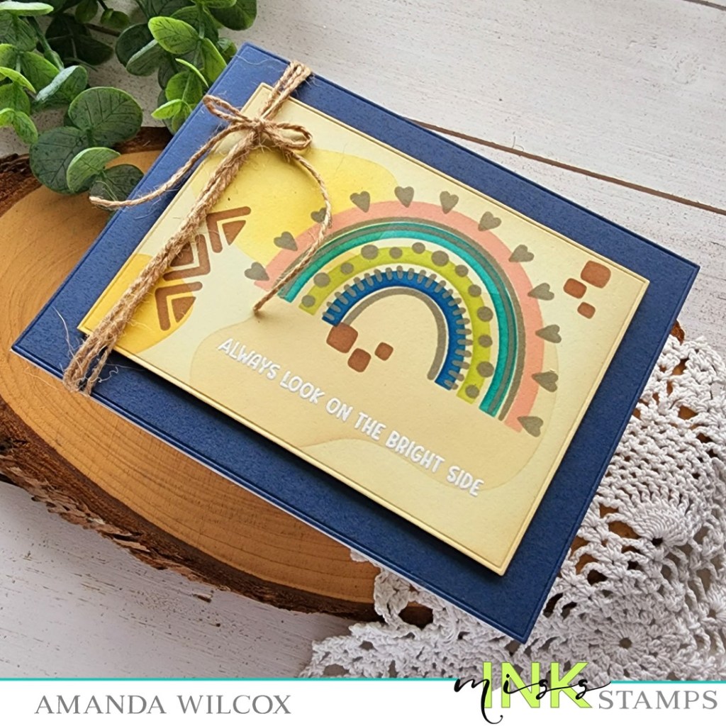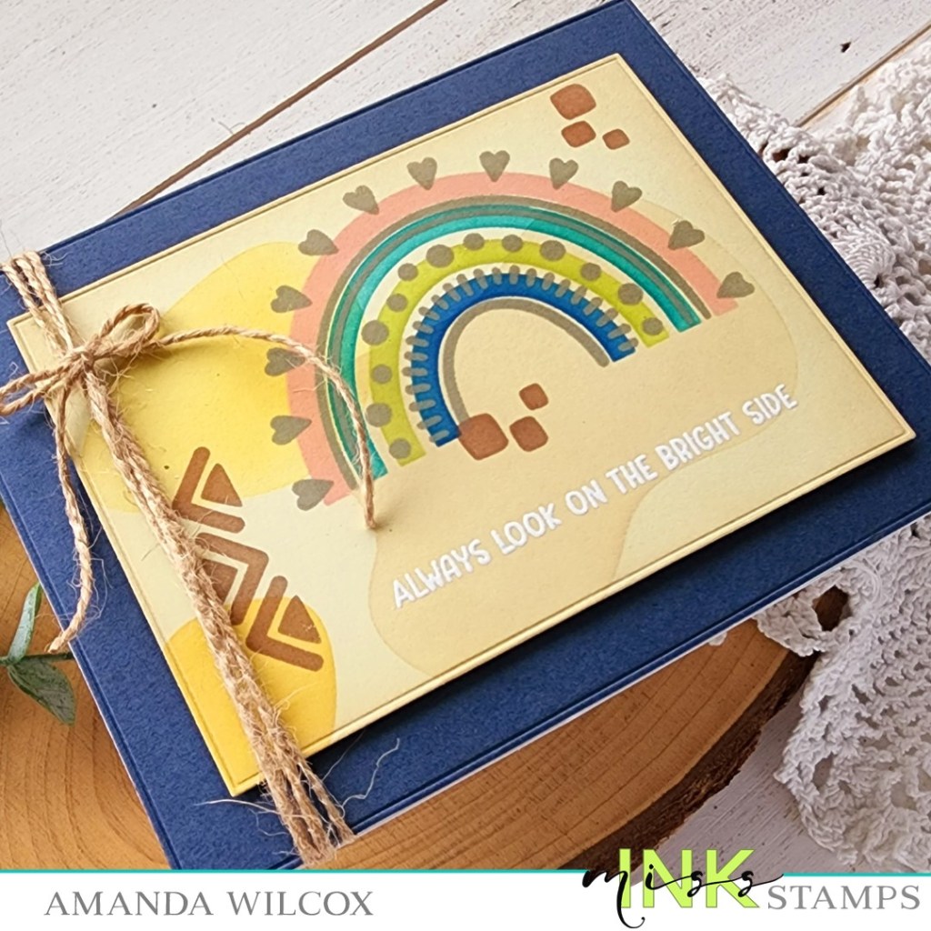 Hello everyone! I’m so happy to be back. I had a very long week and weekend with work and didn’t get to craft a single minute. It was pretty much torture. But today I’m back at it sharing a card using Miss Ink Stamps stencils and a sentiment stamp for a muted boho rainbow vibe.