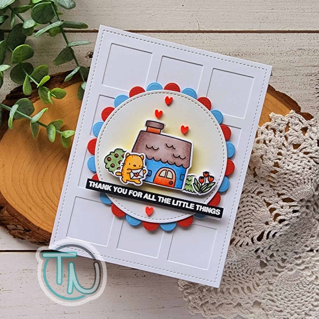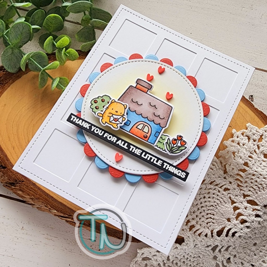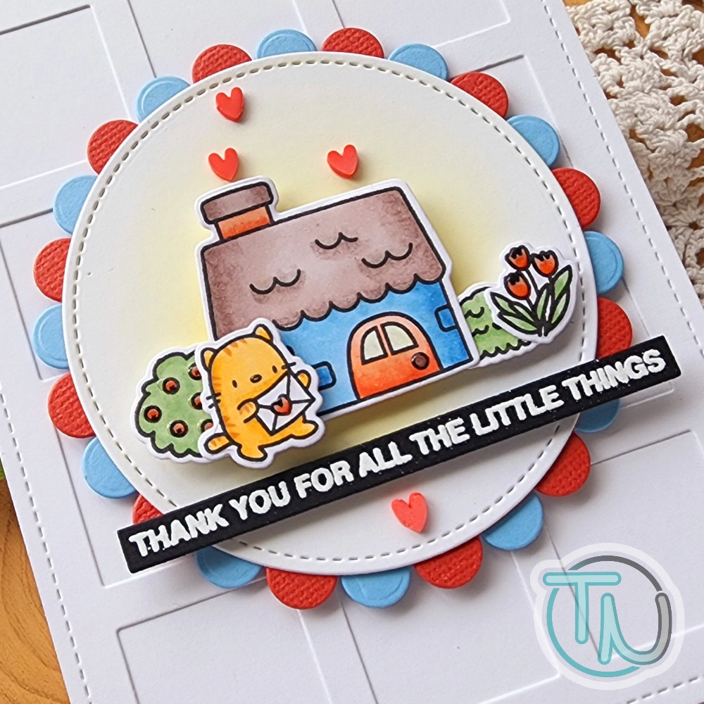 I picked up a few sets from the most recent Mama Elephant release and had so much fun creating this little scene card using the Little Agenda House stamps and dies. I shopped through my stash of Little Agenda critters and decided on this sweet kitty purely because the recipient of this card is very much a cat person.
