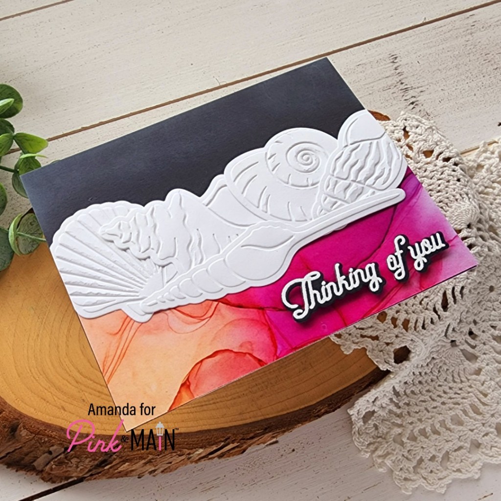 Happy Friday everyone! I’m popping in today with a couple of cards featuring the Pink & Main July release. I was feeling a bit of a creative funk last weekend and didn’t know what to make. I had this feeling of wanting to create but nothing sparked my interest. When this happens I start with one of two things – create backgrounds with inks or embossing OR play with dies. This time I grabbed a couple of new dies and just started cutting things out. After just a minute of cutting and arranging the dies in different ways, I had a couple of ideas pop in my head. Here’s what I ended up with.