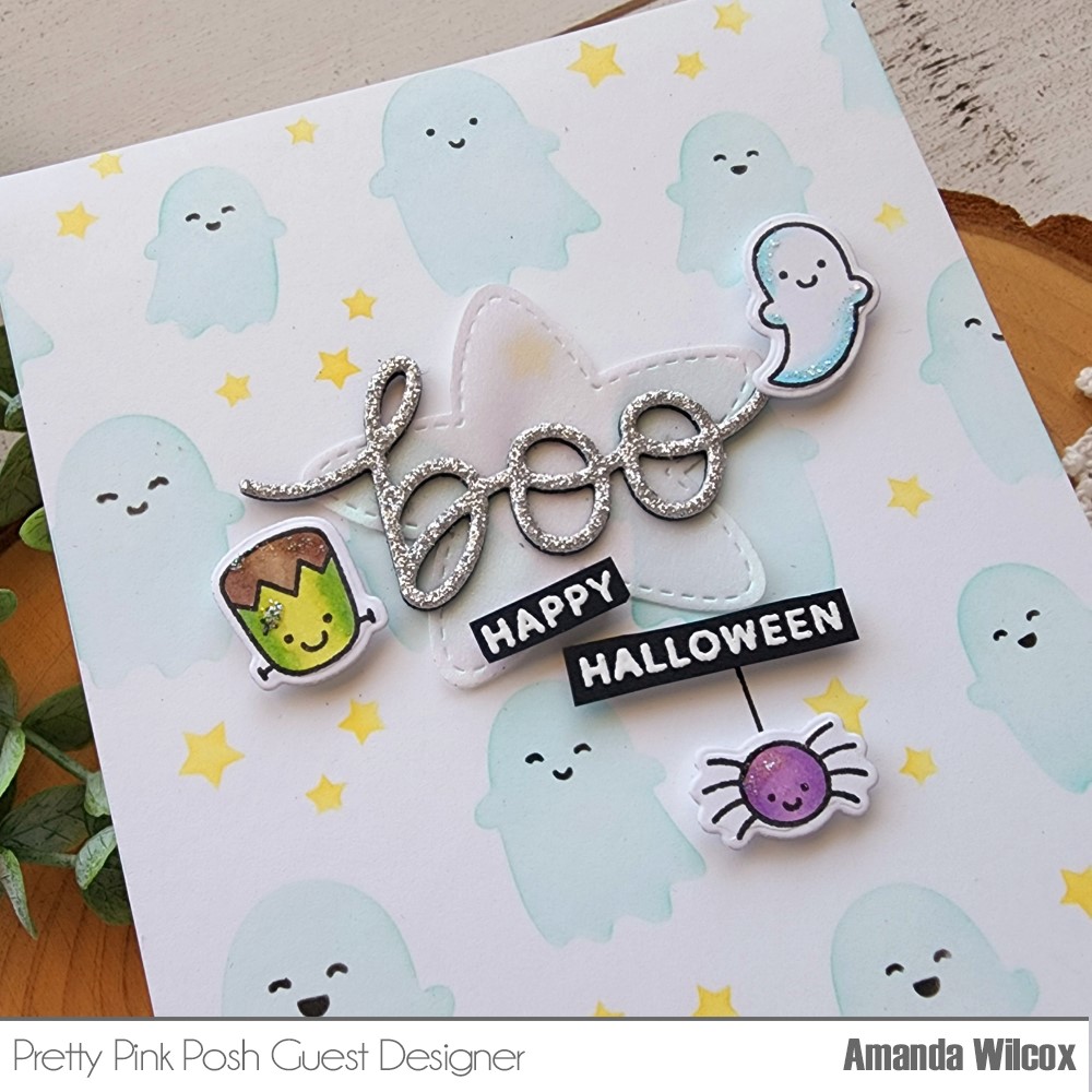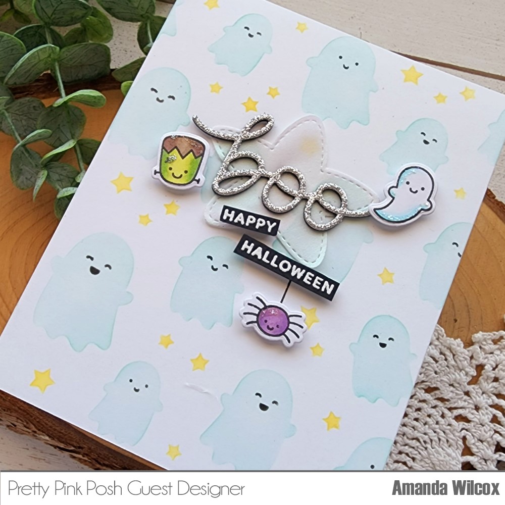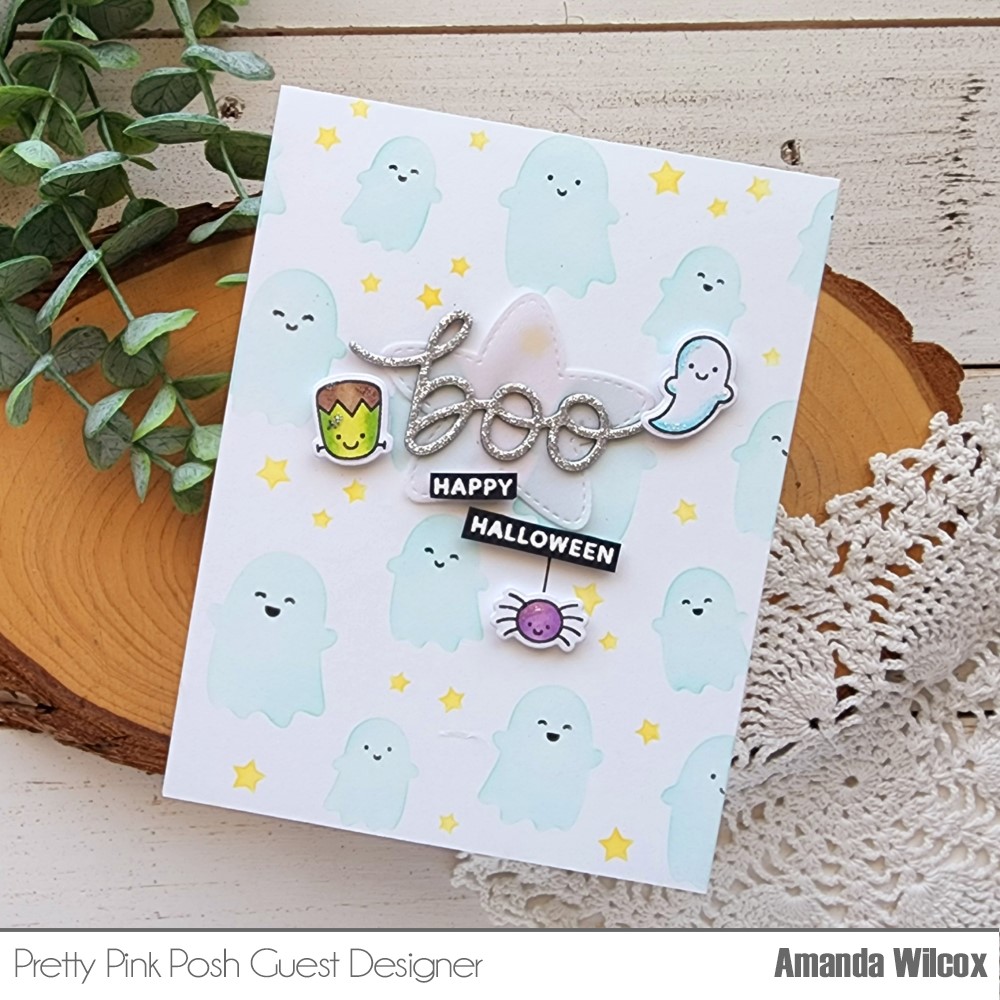 Hello everyone. Thanks for stopping by today. I’m sharing another card featuring some of the August release from Pretty Pink Posh plus some goodies from last year’s Halloween release too!