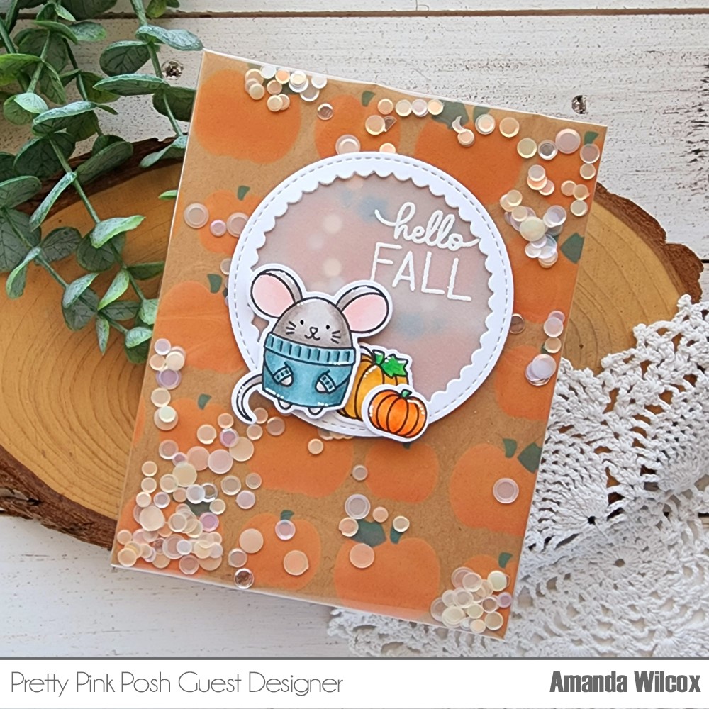 Happy Friday everyone! I have another card to share with you featuring Pretty Pink Posh cuteness today but I’ve turned a Halloween stencil fall and busted out some cute critters from last year’s fall release. Let’s play!