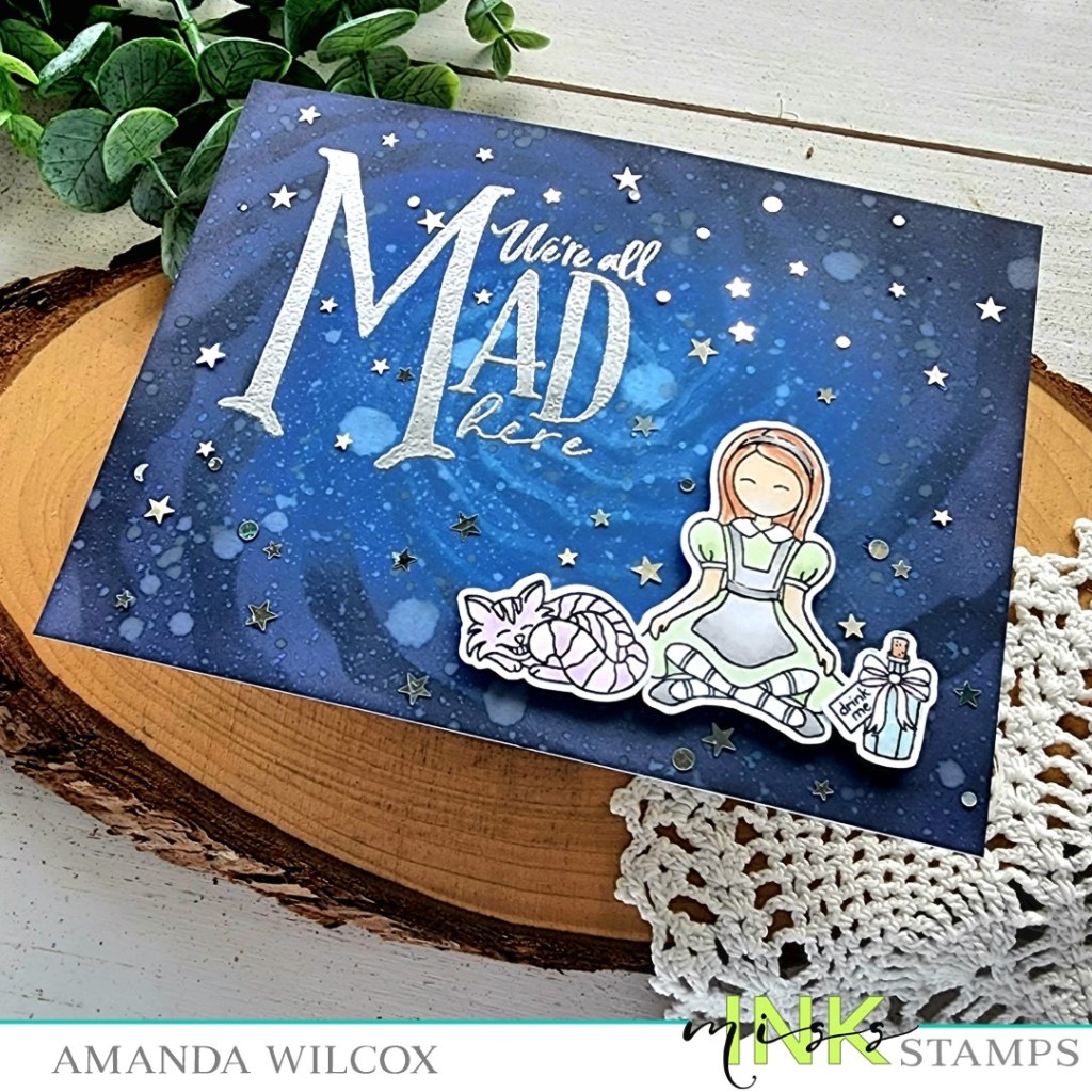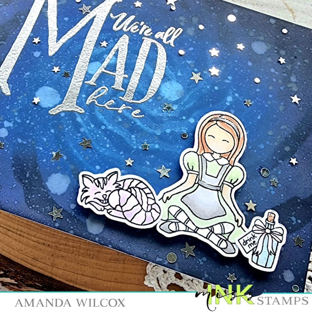 Hello everyone. I’m so glad you’re here today. I have a fun Alice in Wonderland card featuring all Miss Ink Stamps goodies to share with you. Let’s go down the rabbit hole together, shall we?
