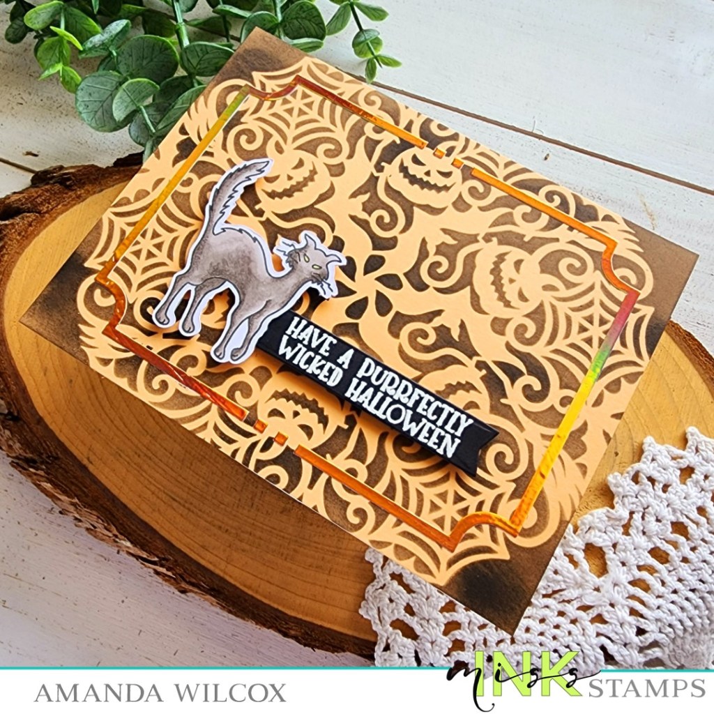 Happy Thursday everyone! The week is chugging along and I’m back with another fun Miss Ink Stamps card today. I realized I hadn’t used the awesome Feline Spooky stamp set yet this year so I just had to pull it out and remedy that problem right away.