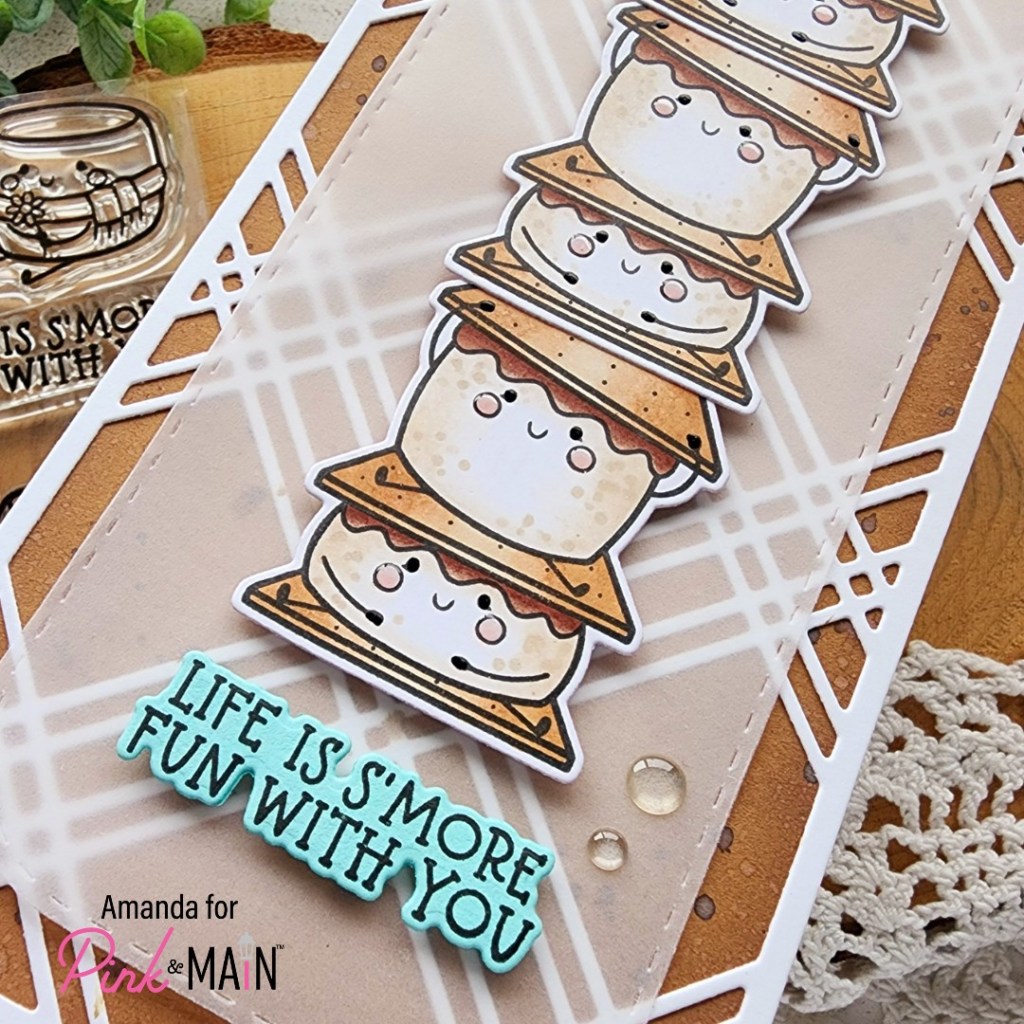 Hey crafty friends! So glad you’re here today. I’m sharing a fun way to use the Stamp and Die of the Month from Pink & Main today. This subscription is such an amazing deal and I have been over the moon in love with literally every single one since it started. It’s SO GOOD! This month we have s’mores characters doing different antics that are amazing to create with all year long. They’re so cute!